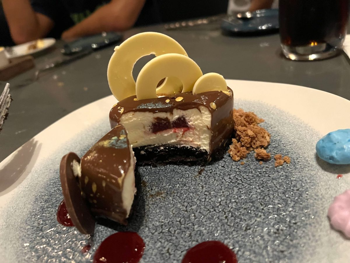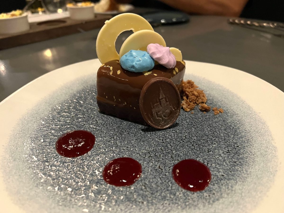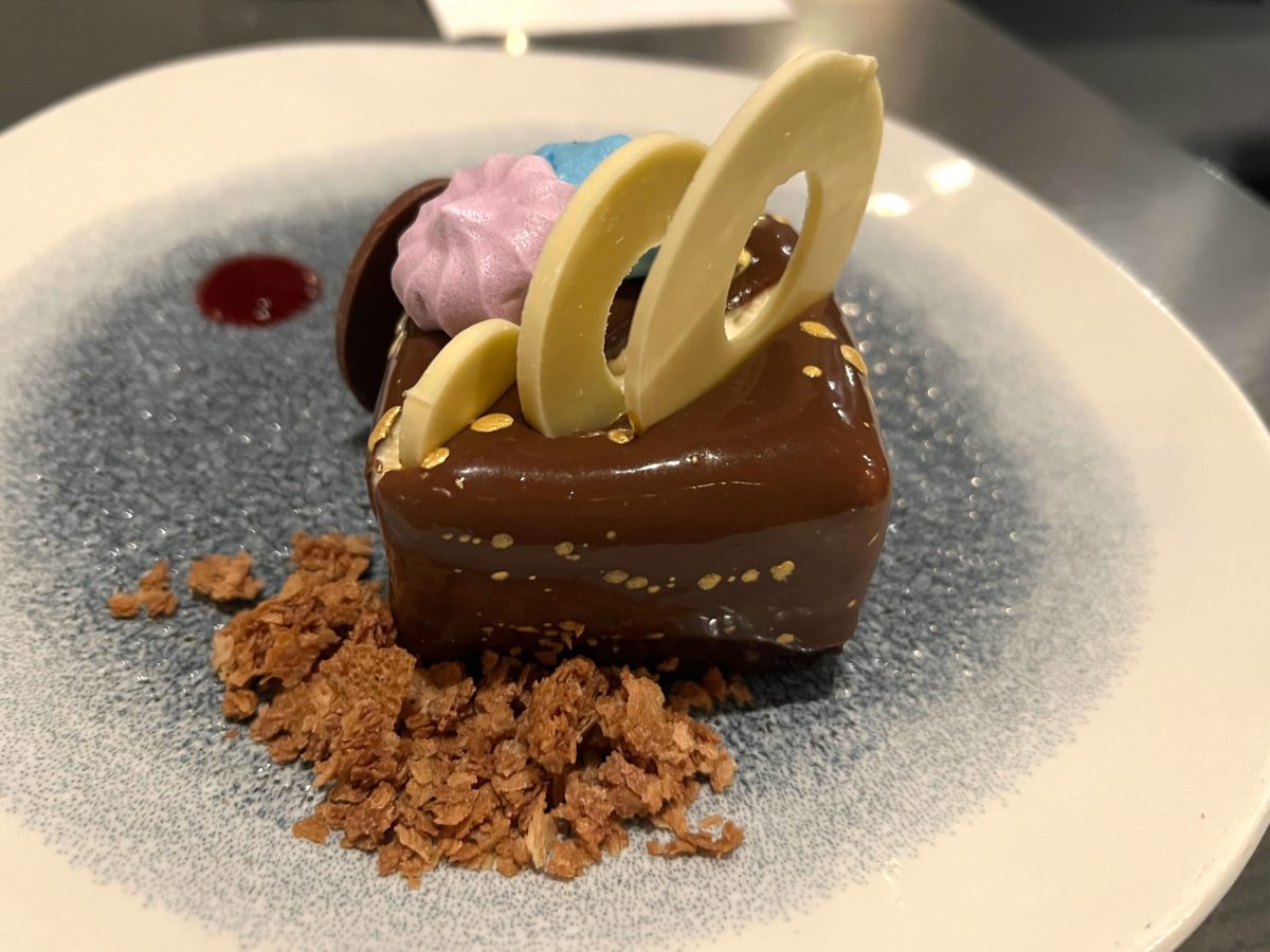 Much like nearly every other 50th anniversary dessert at Walt Disney World, this one has a chocolate 50th icon.