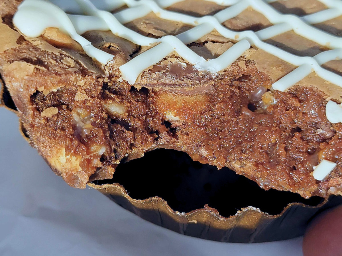 One of the big benefits of this one is that the cookie is mostly peanut butter, which means the chocolate icing on top can be spread and mixed as you see fit, perfect for those that aren’t the biggest fans of the peanut butter-chocolate combo. Many Disneyland cookies are very hard and dense—good flavor but hard texture. But this one is so wonderfully soft. The thickness of the cookie being made in the pie dish really brings a fluffy body to it. Absolutely delicious, we were big fans of this one.