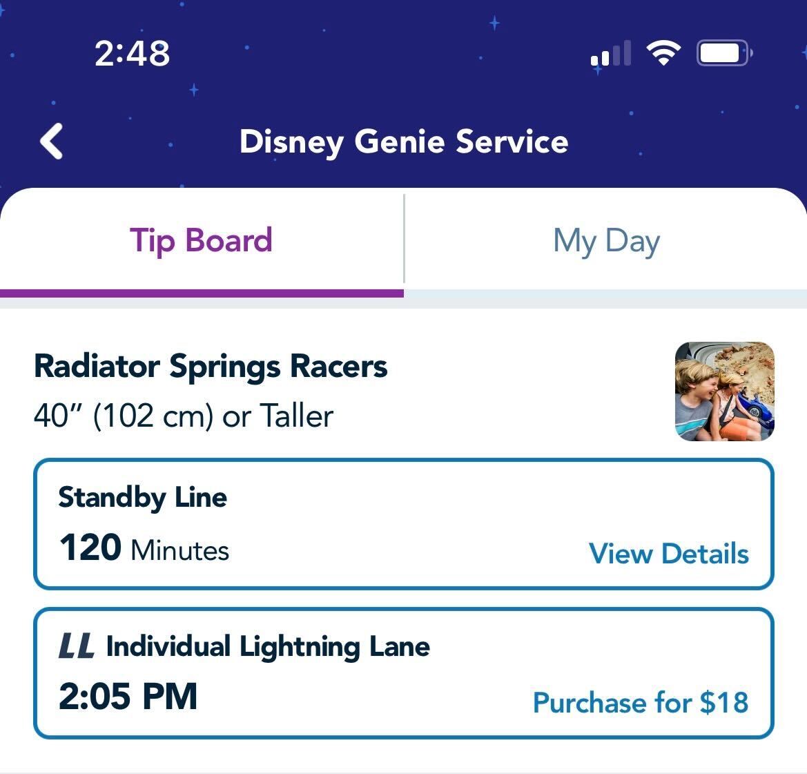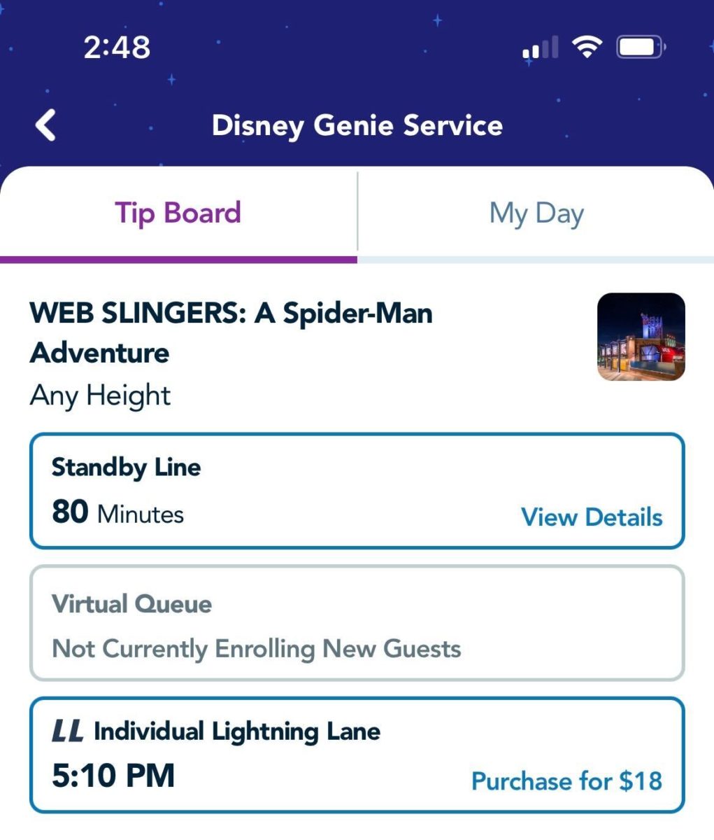 Lightning Lane access for WEB SLINGERS: A Spider-Man Adventure and Radiator Springs Racers are currently selling for $18 per person, a substantial raise from $7 per person, as it normally is on weekdays.