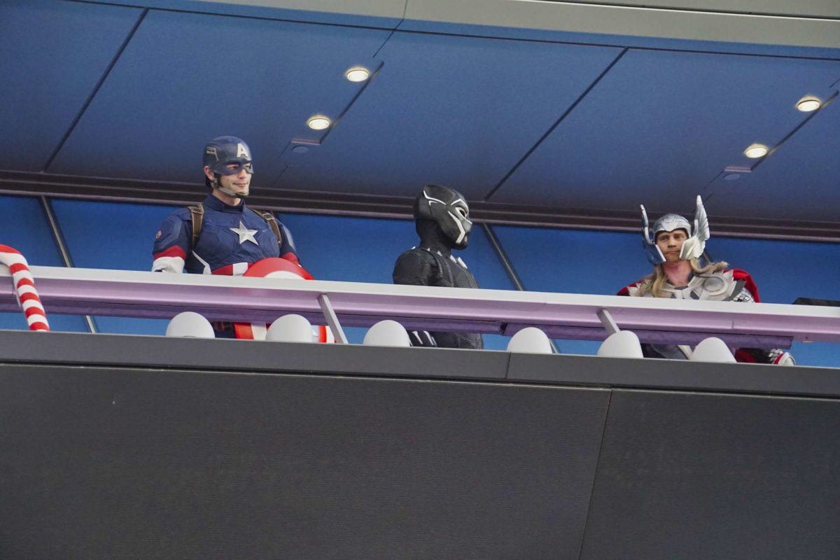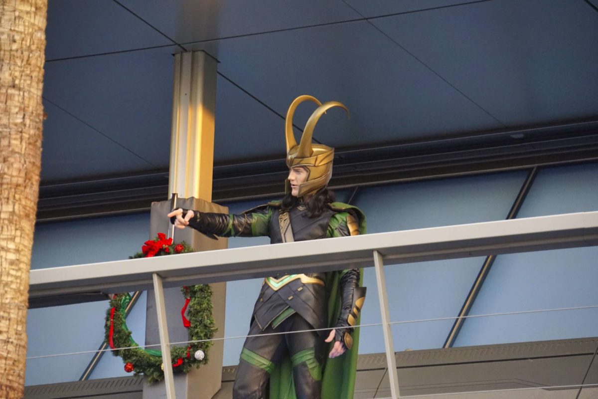 Many of the Marvel heroes and villains were out greeting guests today. Loki looked down over his subjects earlier in the day.