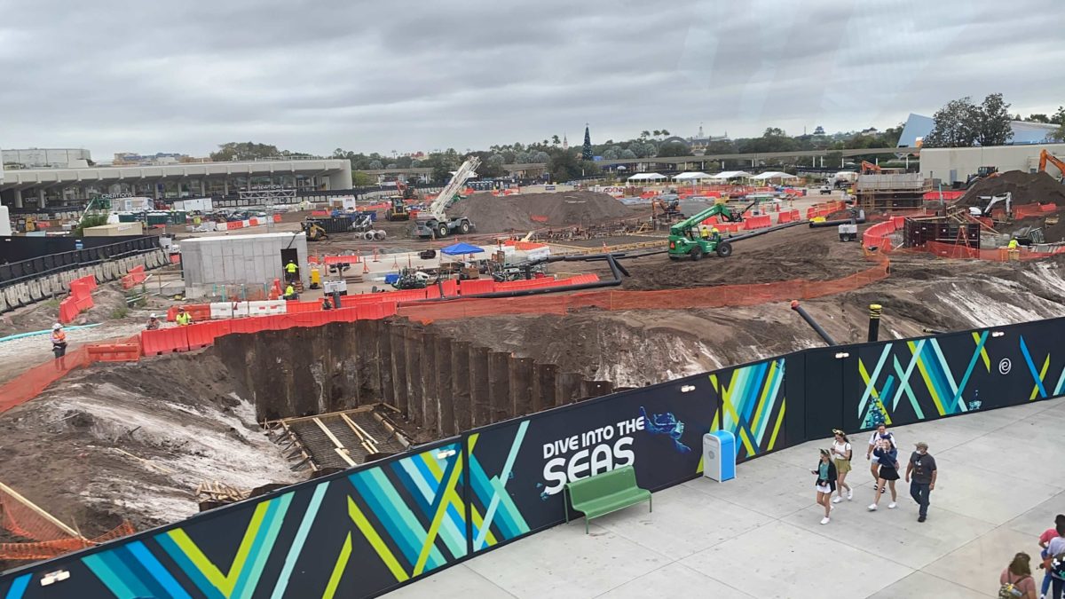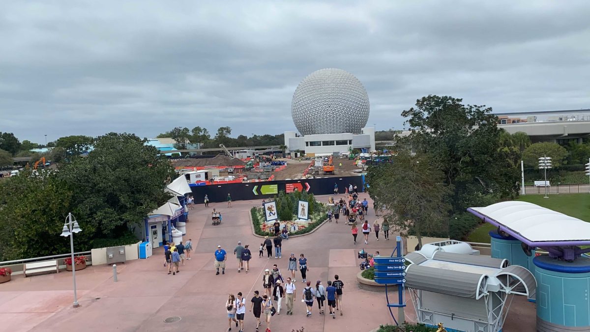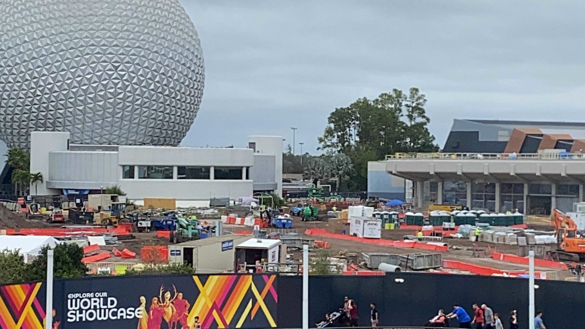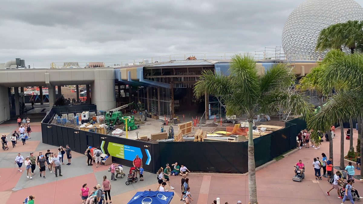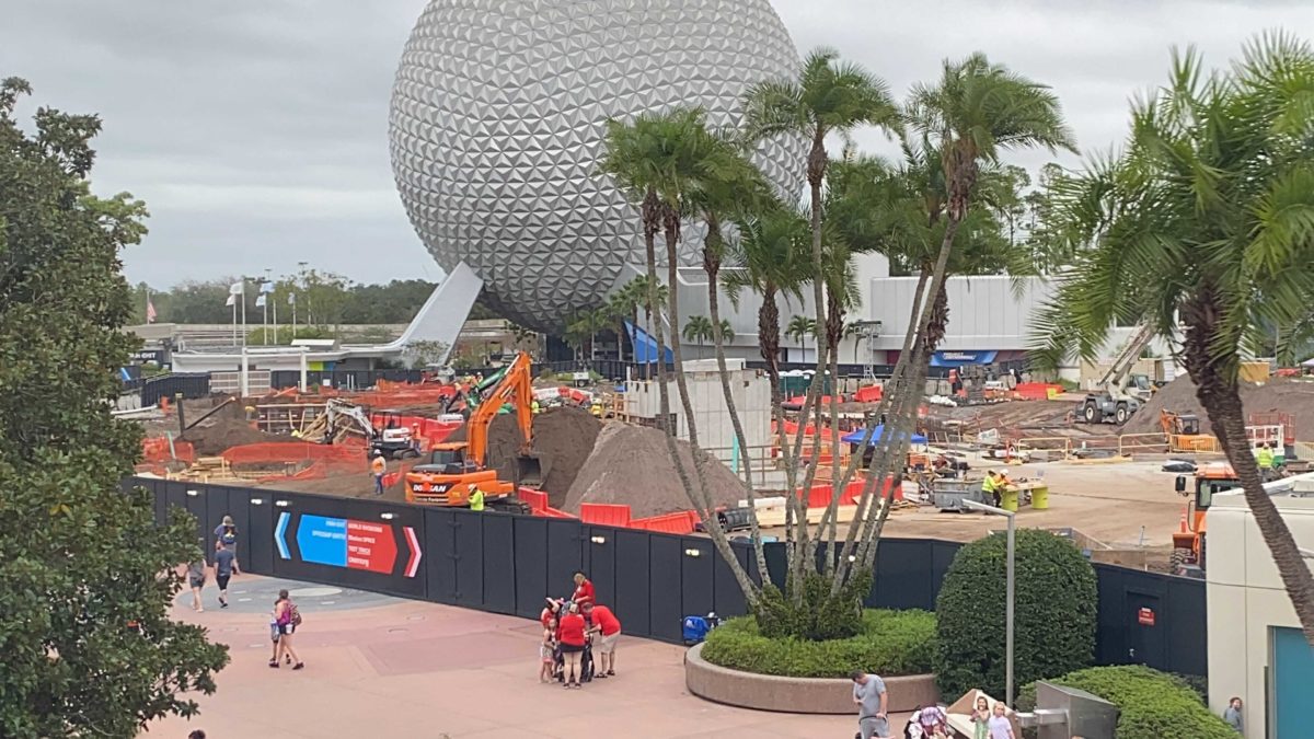 And finally, more construction activity on the World Discovery side of Spaceship Earth, between the attraction and Guest Relations.