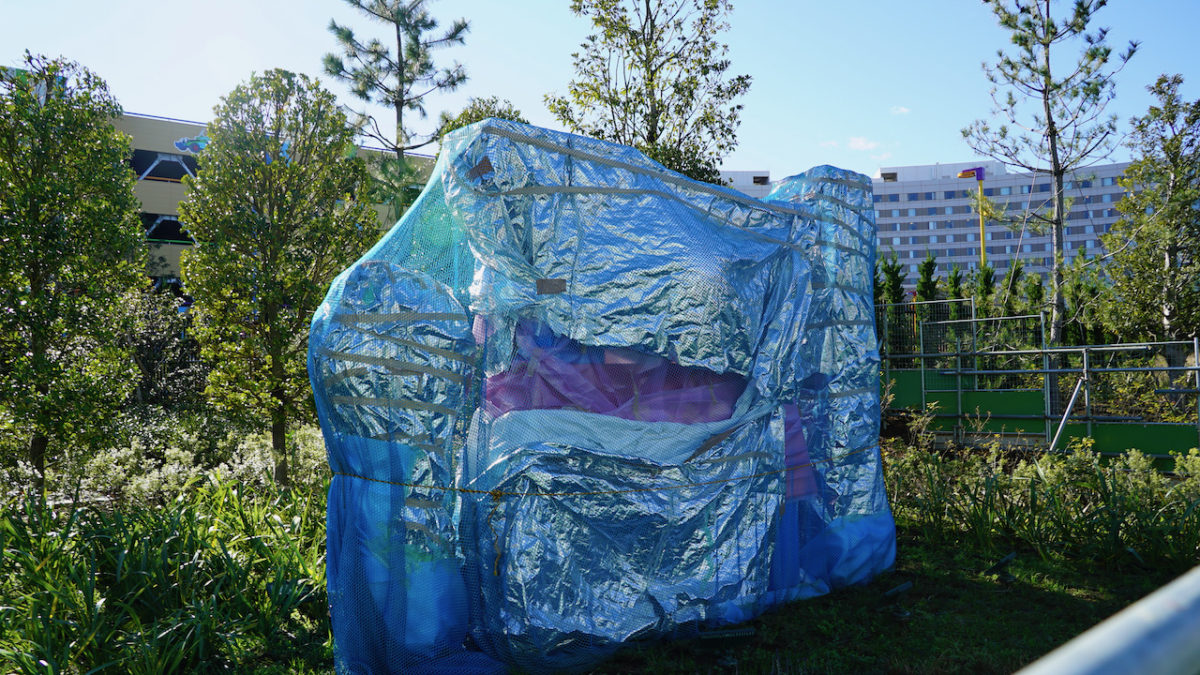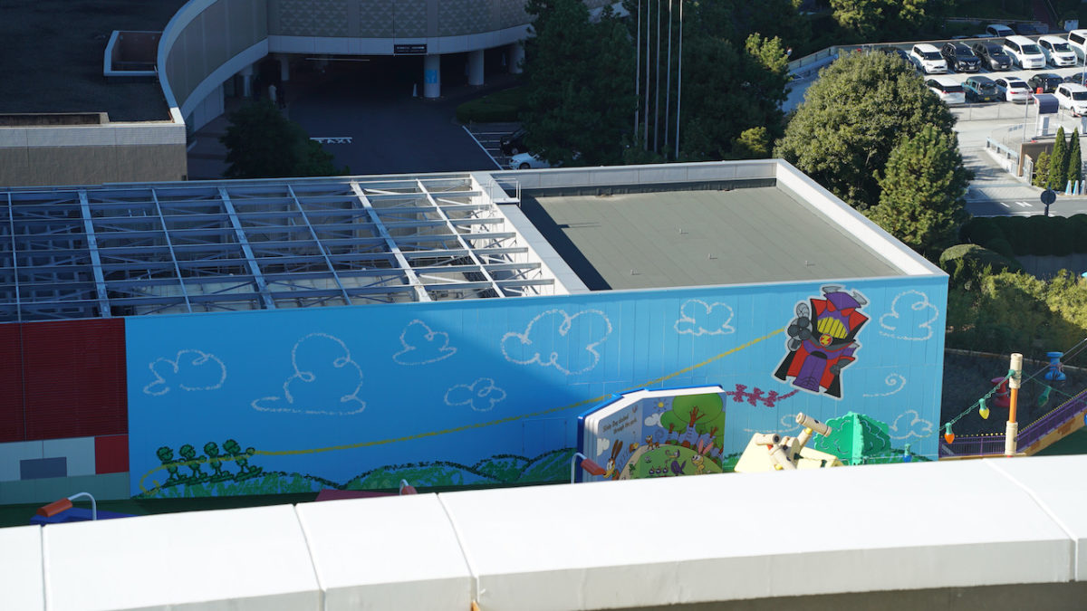 The Lotso Garden Cafe is very visible (and appears to be nearly complete as well) through the backside of the hotel. The restaurant will be a buffet and evidently looks out on Tokyo Bay. Murals featuring Lotso adorn the walls, and there are plenty of visible “trees” as well as a giant rainbow painted on the ceiling.