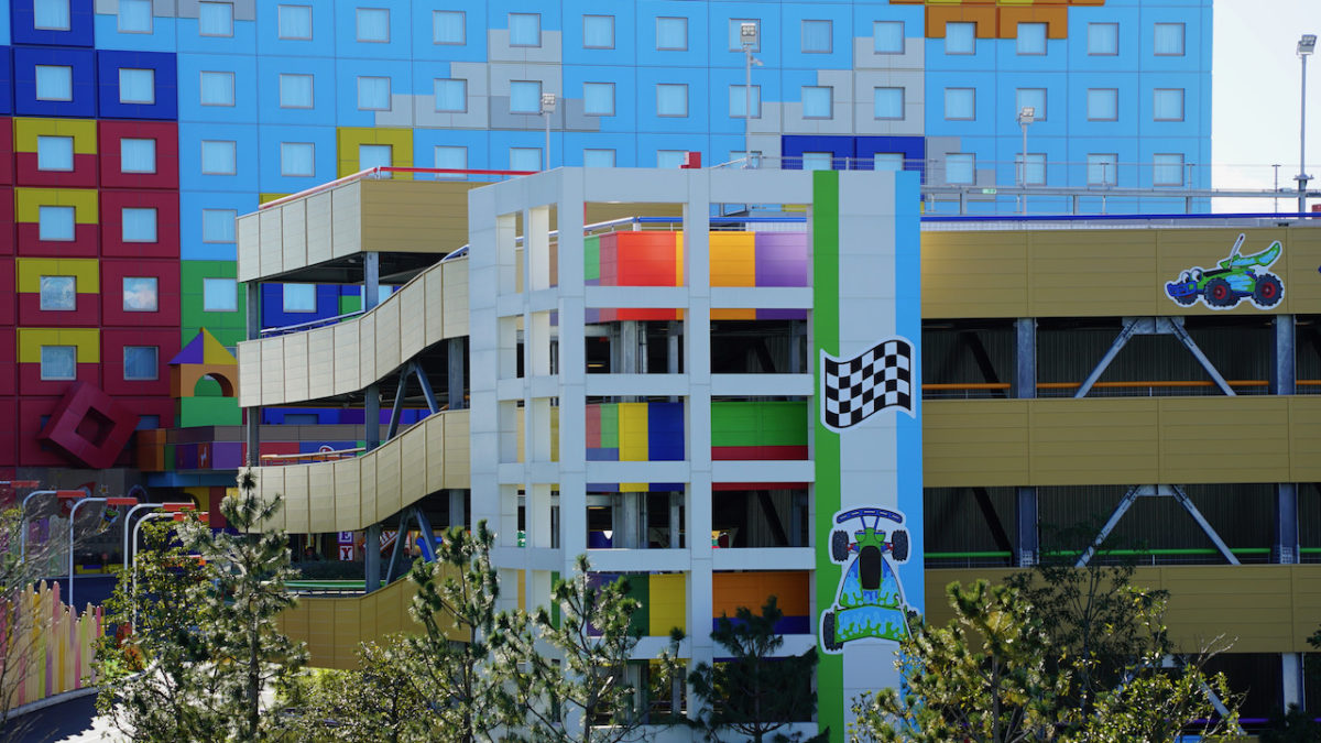 Even small details like decals in the RC Racer parking garage are visible from a distance (and with a zoom lens).