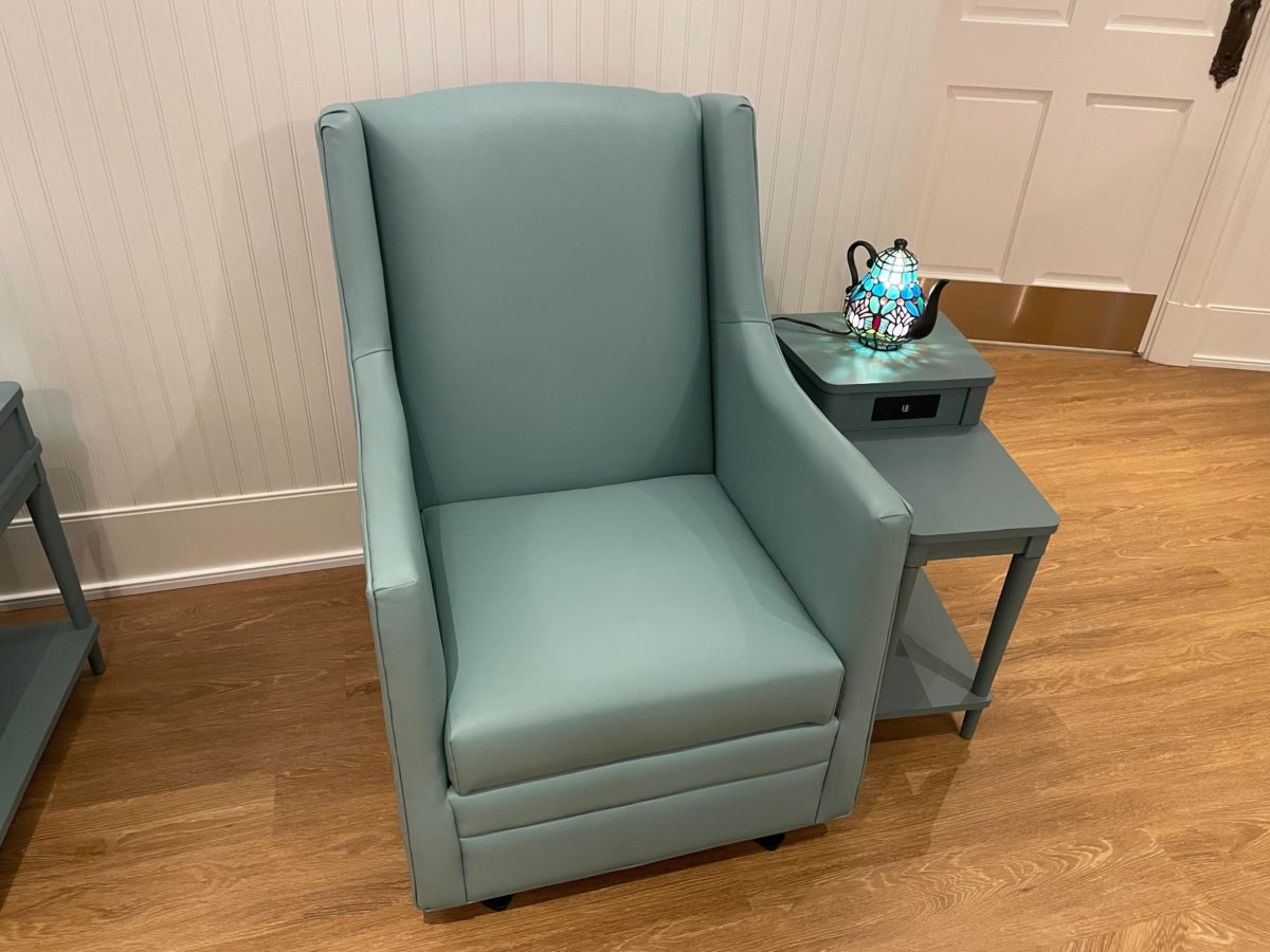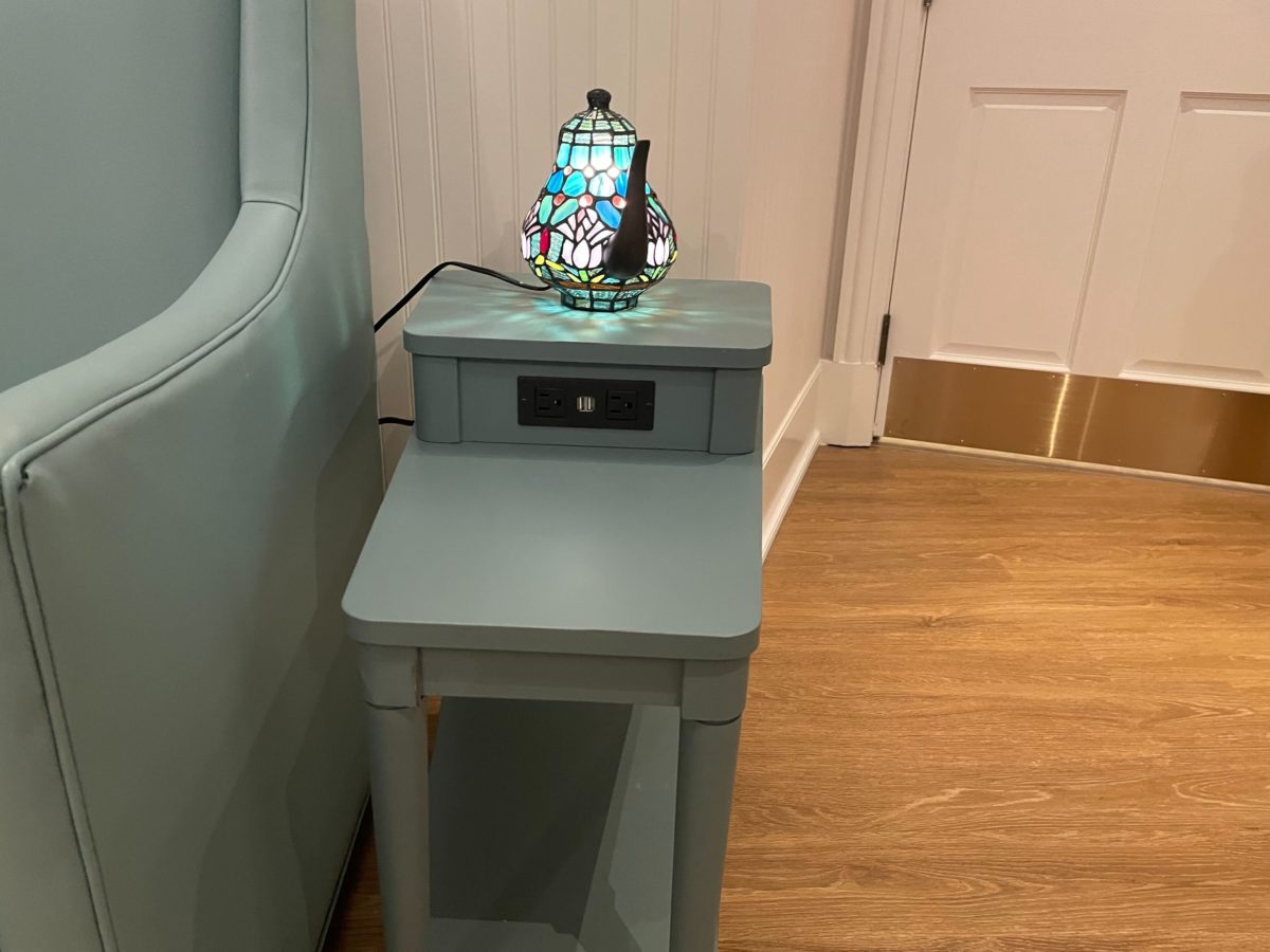 The tables have two standard outlets and two USB outlets, allowing guests to set up breast pumps, charge their phones, and more.