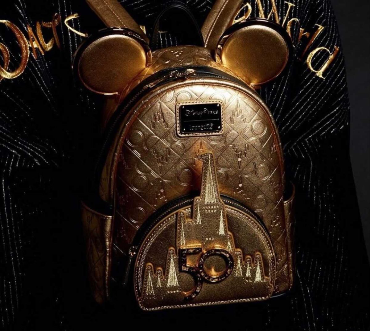 More 50th anniversary items from the Luxe Logo collection are coming soon to shopDisney and Walt Disney World. Instagram user @gentlemansdisney discovered pictures on shopDisney UK of the new Loungefly backpack, plus the previously revealed Spirit Jersey and Minnie ear headband.