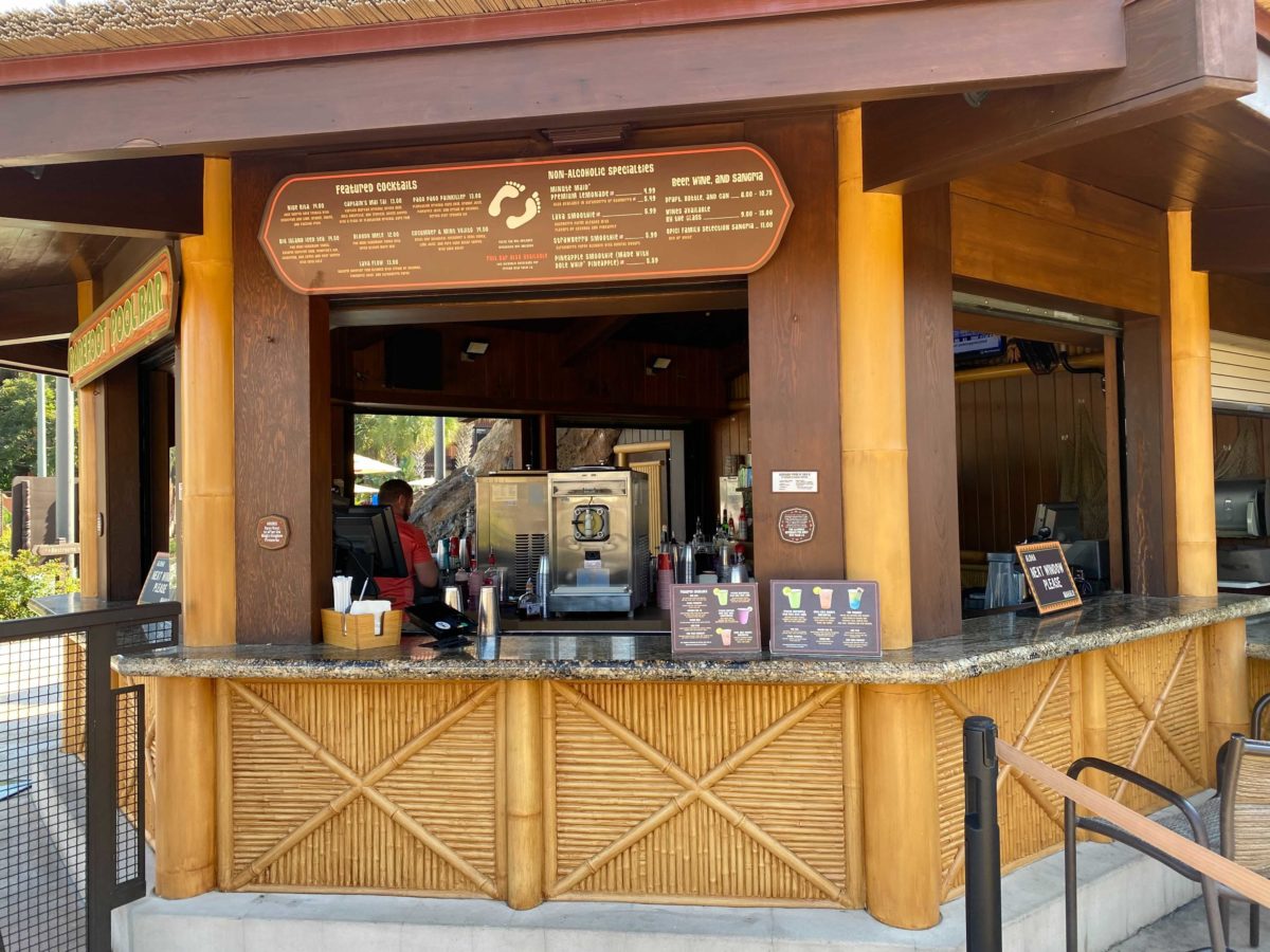 Barefoot Pool Bar is next to the Lava Pool, behind the Great Ceremonial House.