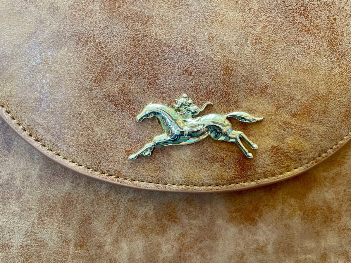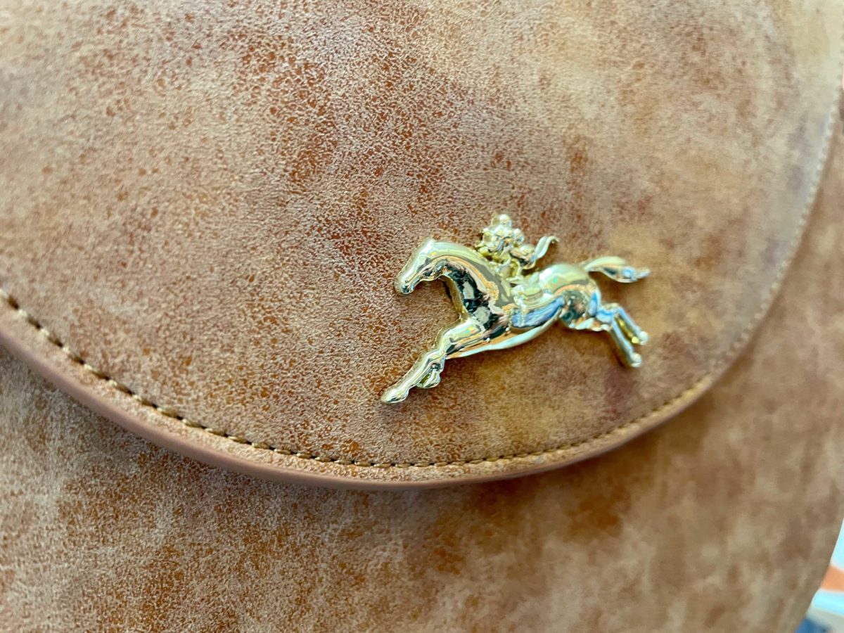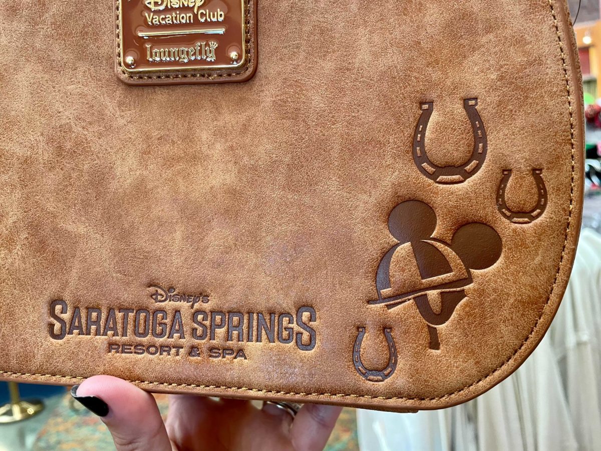 A Loungefly purse resembling a saddle bag also arrived recently. The back features the resort logo, a jockey helmet with Mickey ears, and three horseshoes.