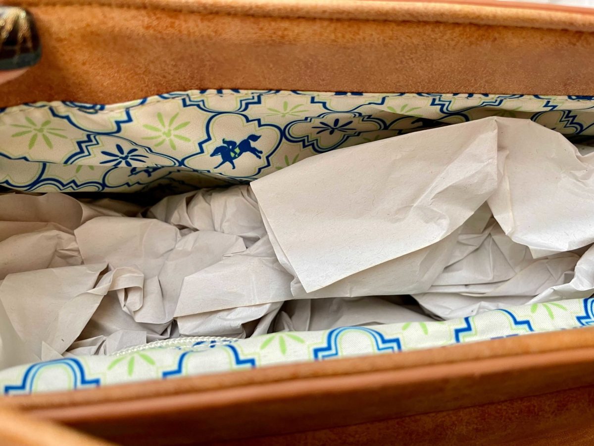The resort’s logo featuring Mickey on a racehorse is on the front of the bag.