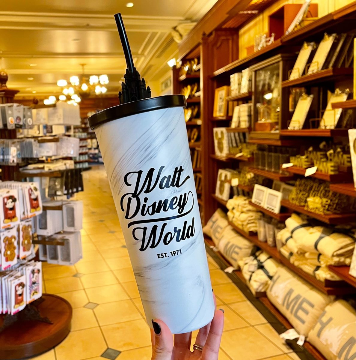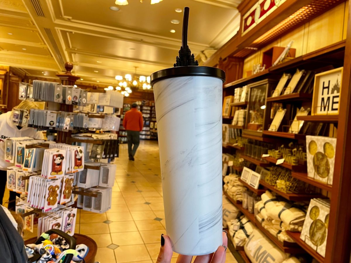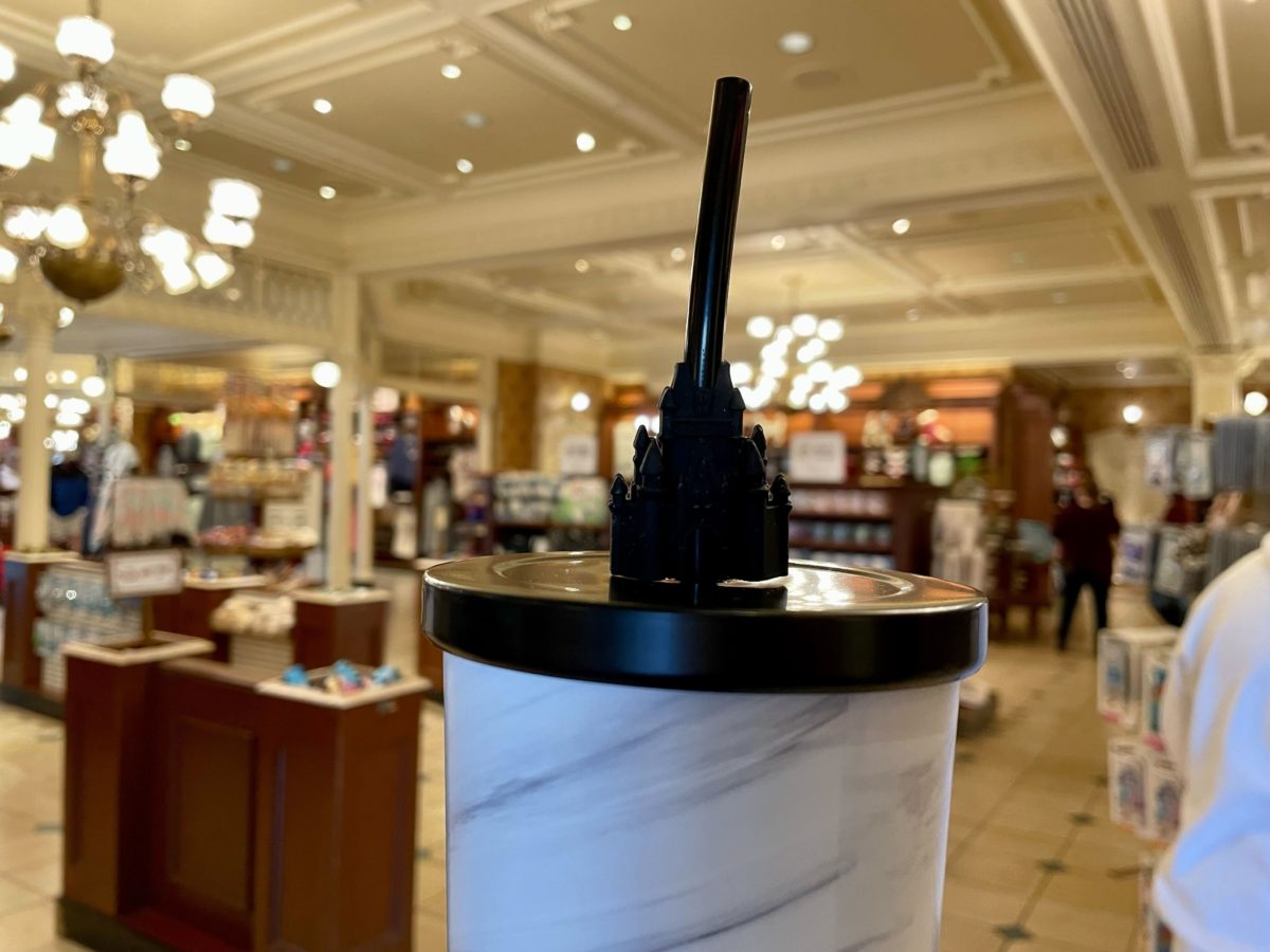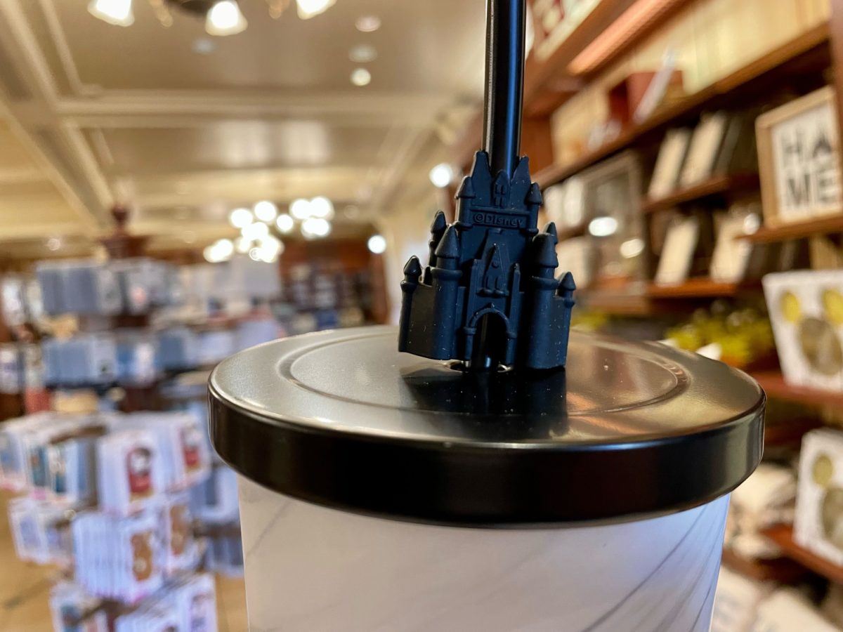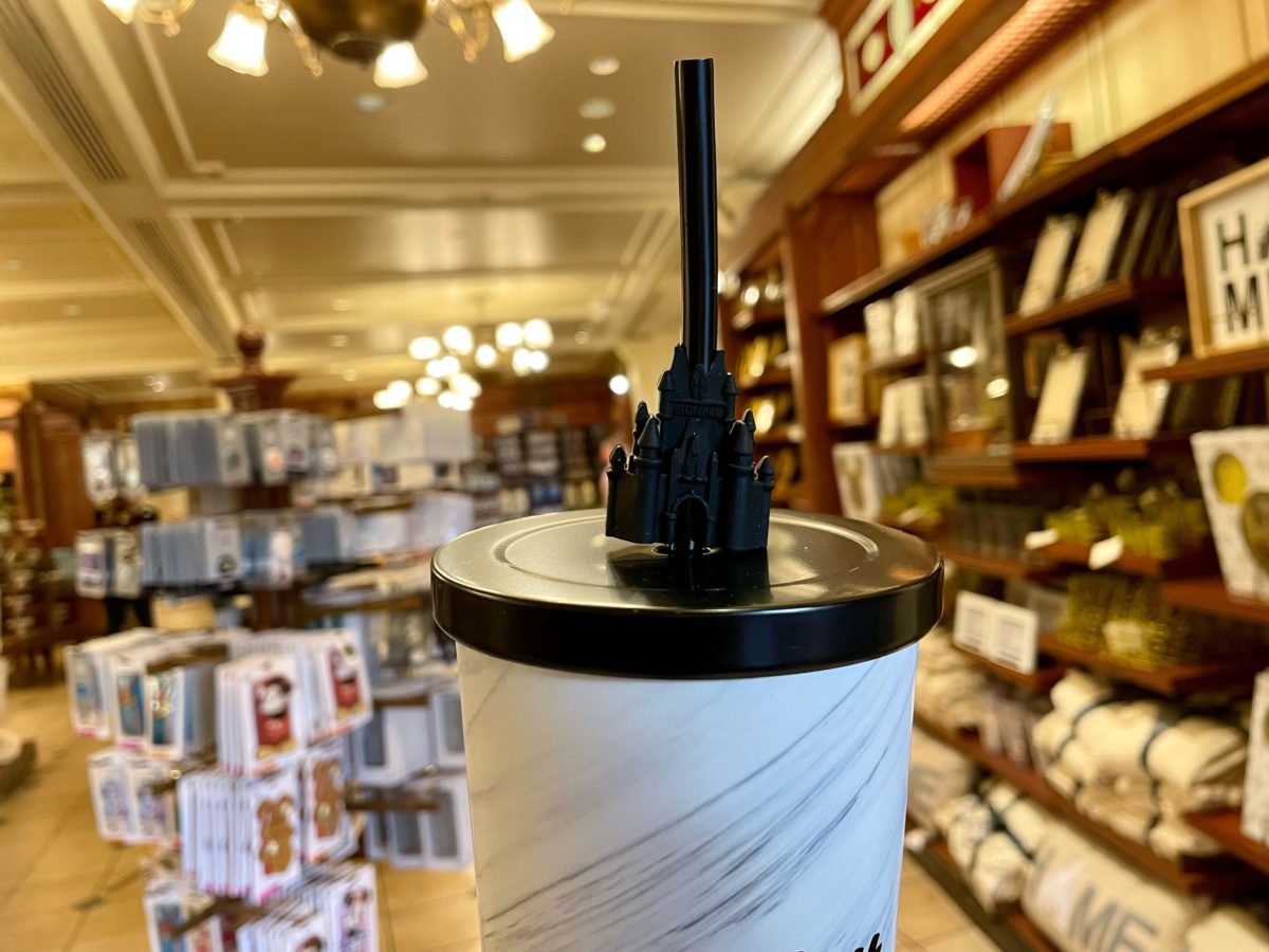 A new travel cup with a Cinderella Castle straw topper is now available for purchase at Walt Disney World. We found it in the Emporium at Magic Kingdom.