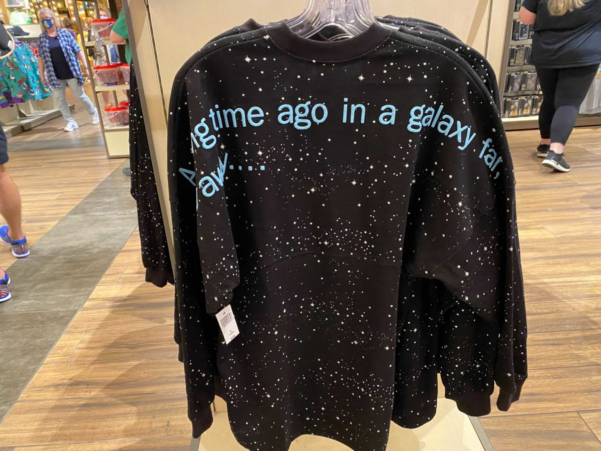 A new Spirit Jersey inspired by the iconic opening crawl of the “Star Wars” films is now available at Walt Disney World. We found it in World of Disney at Disney Springs.