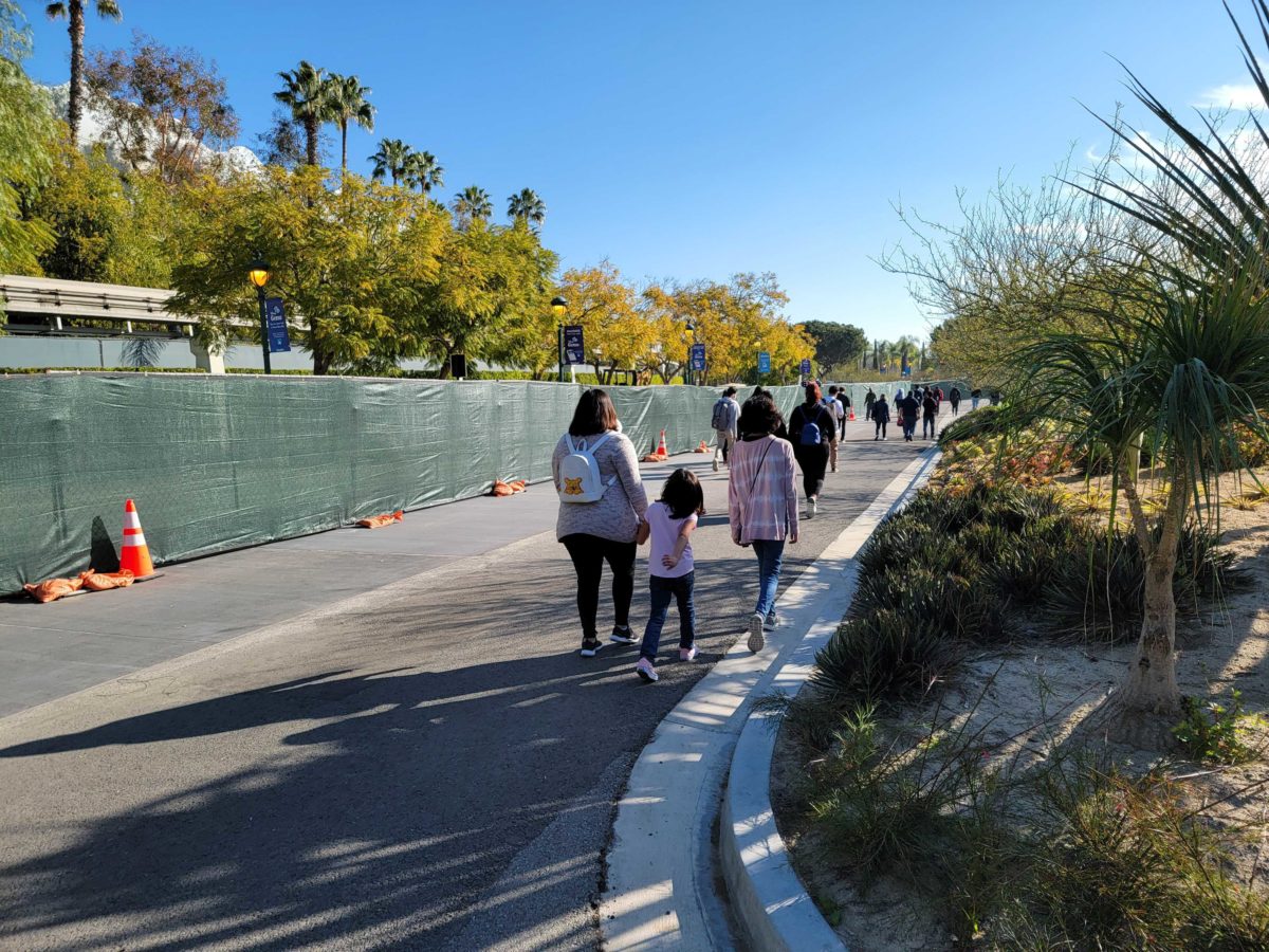 While trams are set to resume service at Disneyland Resort in “early 2022,” construction continues at the Downtown Disney District tram station, which is being renovated.