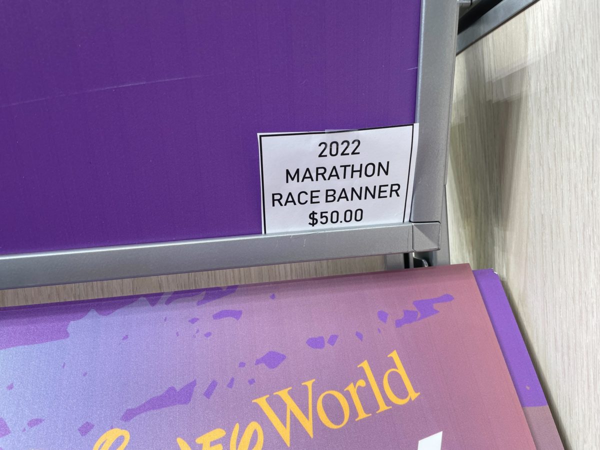 The Walt Disney World Marathon Weekend is here, and the runDisney Expo opened yesterday to runners and guests. Merchandise began selling very quickly, and today, very little remains. With the Expo open tomorrow afternoon, Disney apparently improvised additional merchandise by selling the signage from empty displays.
