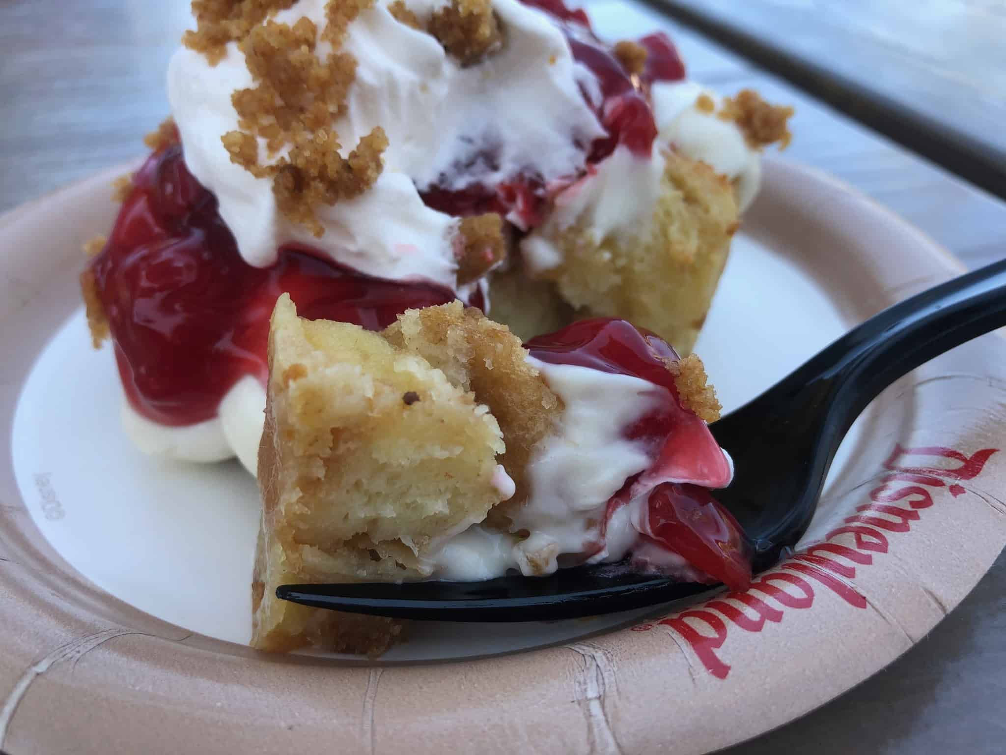 The Cherry Cheesecake Bread Pudding has returned to the Pacific Wharf Cafe at Disney California Adventure for a limited time.