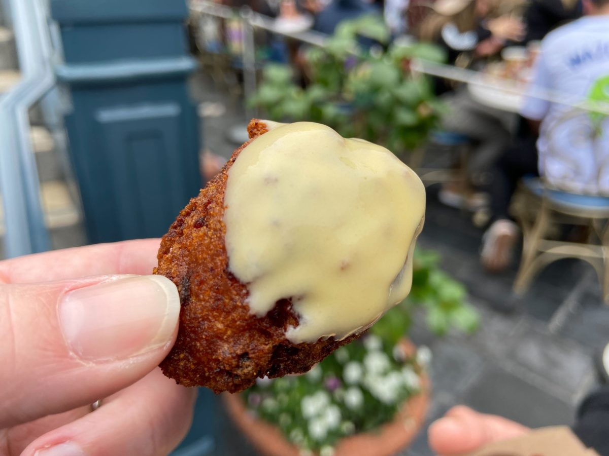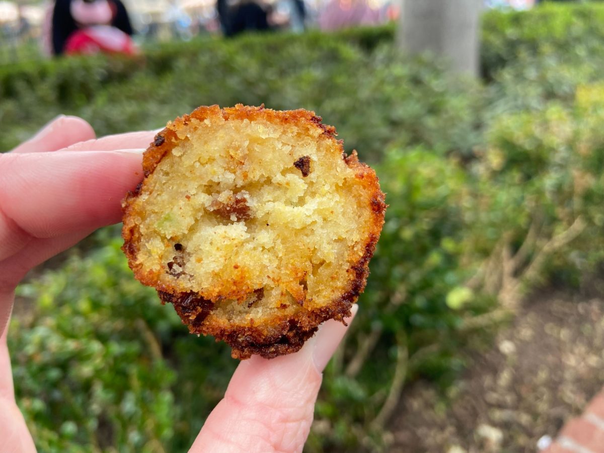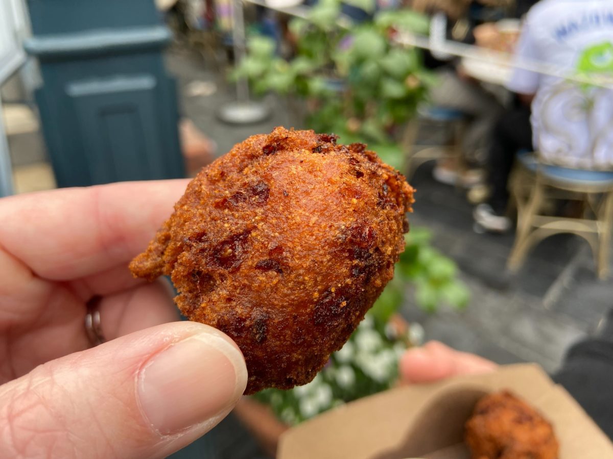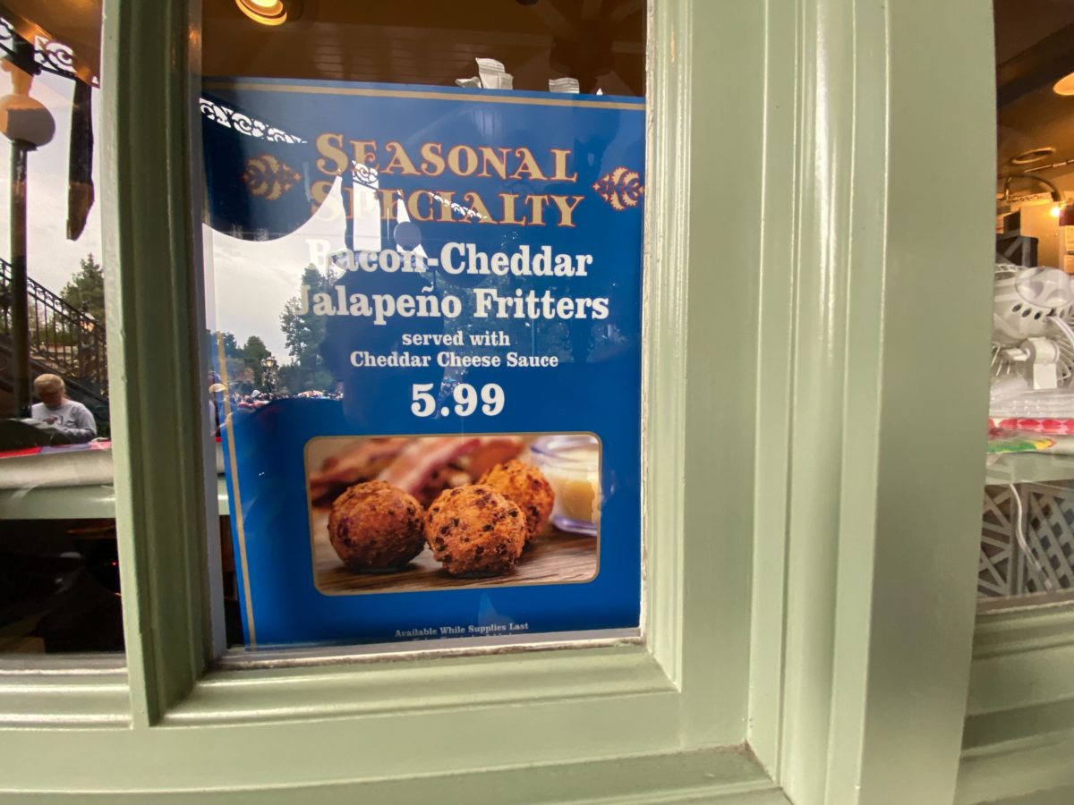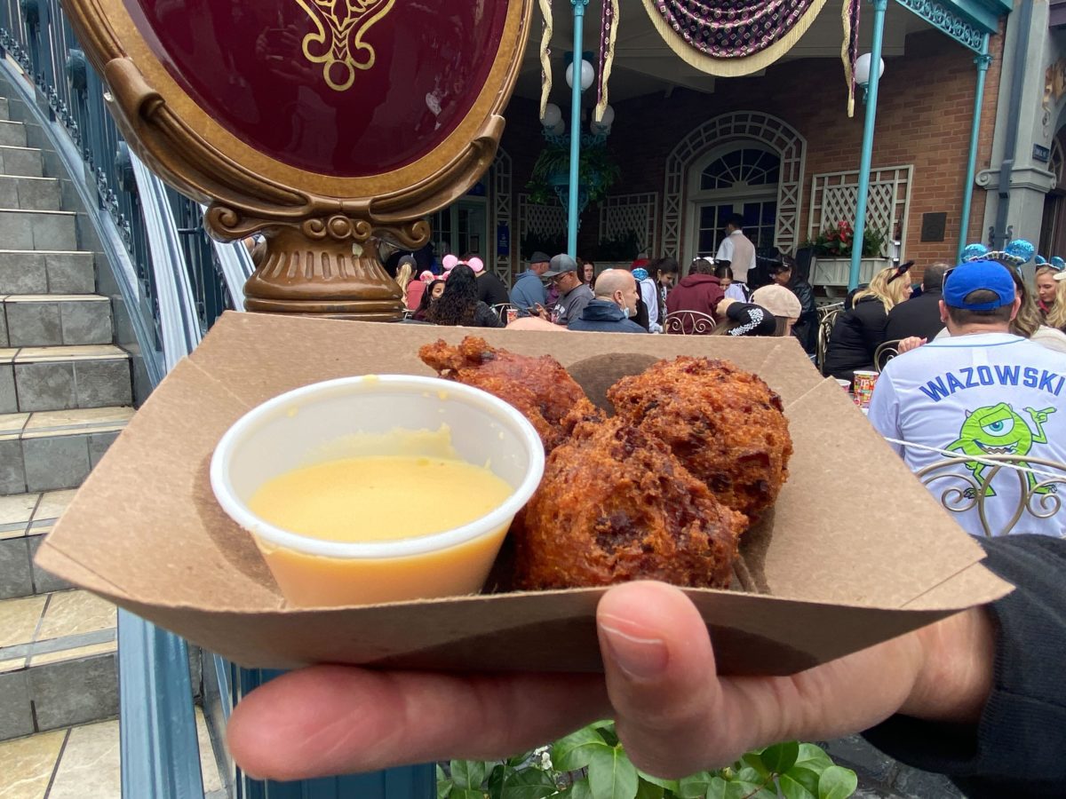 Royal Street Veranda at Disneyland has debuted a new seasonal snack: bacon-cheddar-jalapeño fritters.