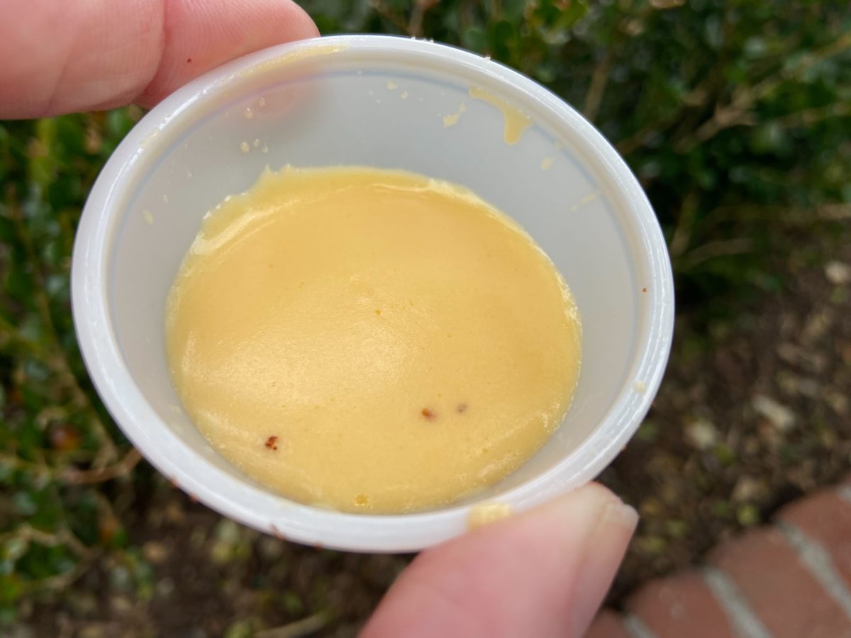 They are a tad dry on their own, so we recommend using the sauce. The cheese sauce had a nice mellow cheddar flavor.