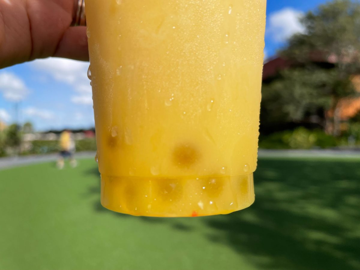 It’s topped with popping candy (pop rocks) and also has pineapple bubbles (boba) at the bottom. You can hear the pop rocks popping like fireworks.