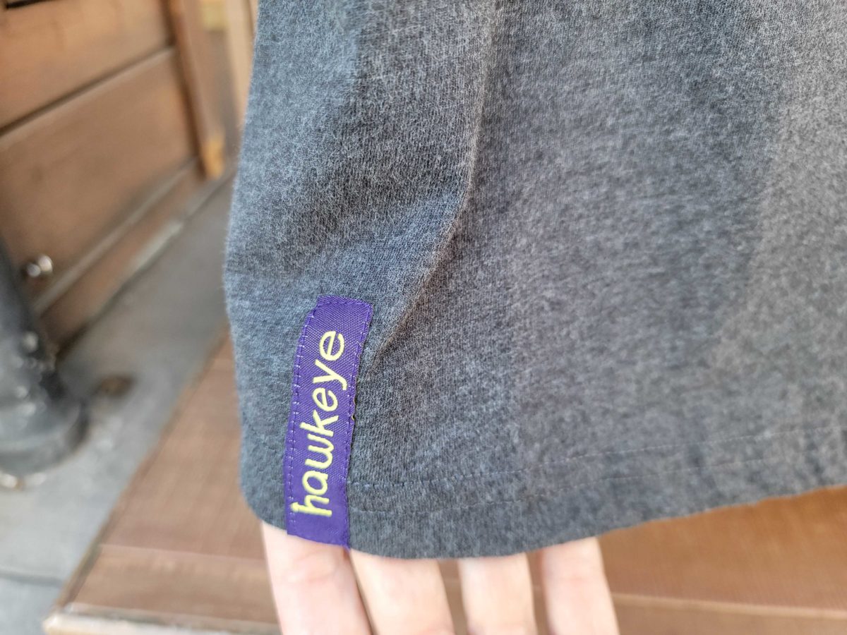 The “Hawkeye” logo is on the bottom of the shirt with the “Hawkeye” icon on the sleeve.