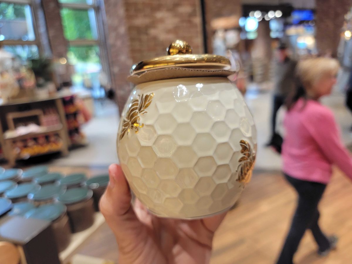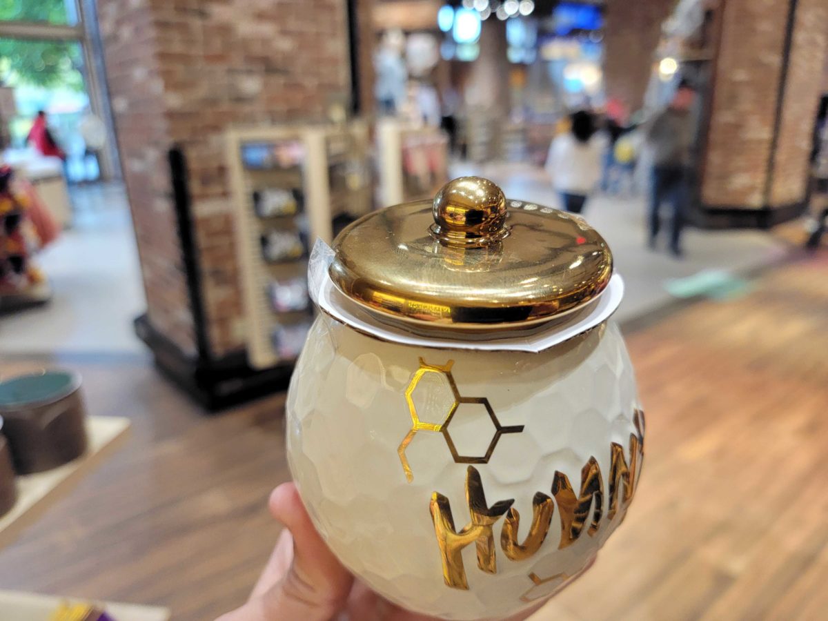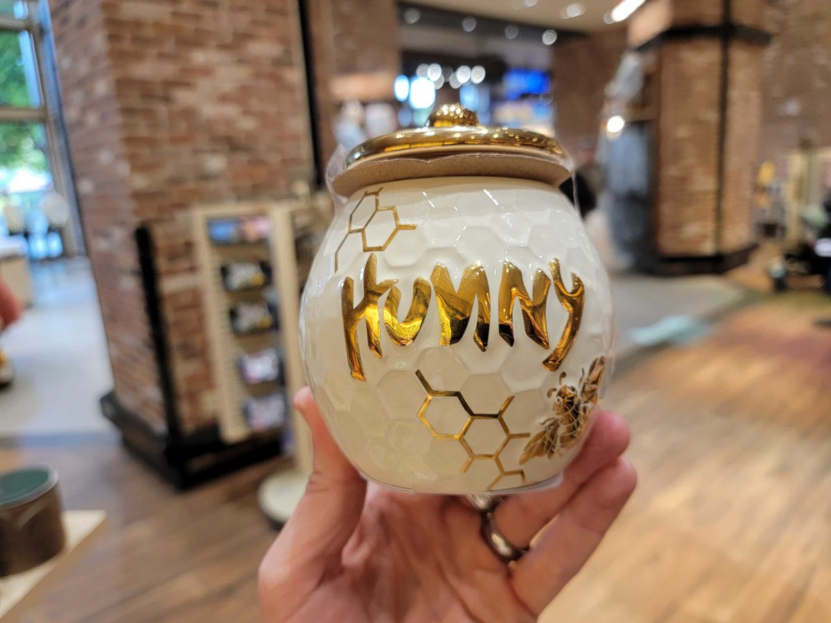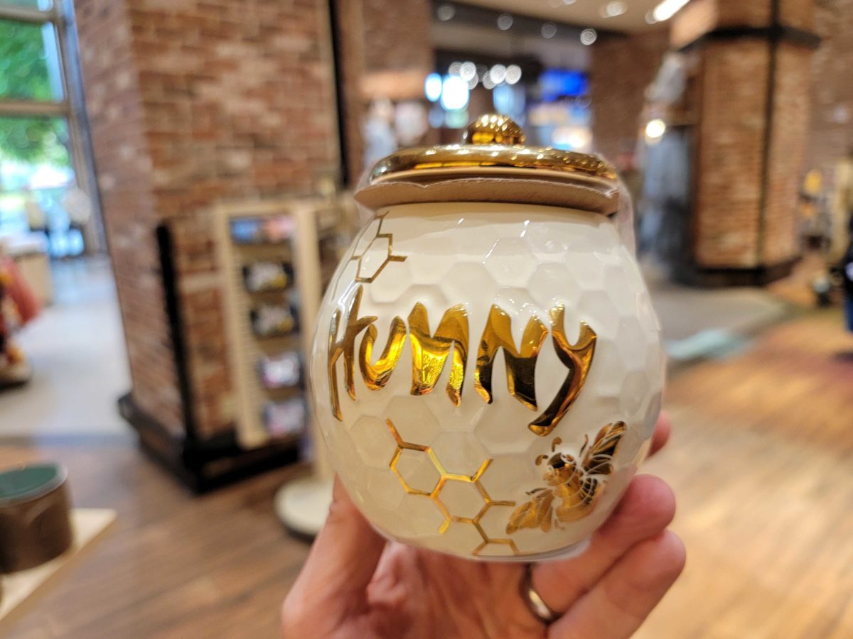 “Hunny” is painted on one side, with some of the honeycomb outlined in gold.