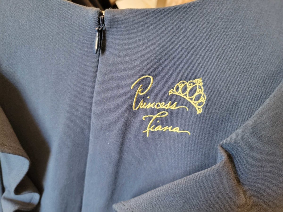 Princess Tiana’s signature and tiara are embroidered in gold on the back.