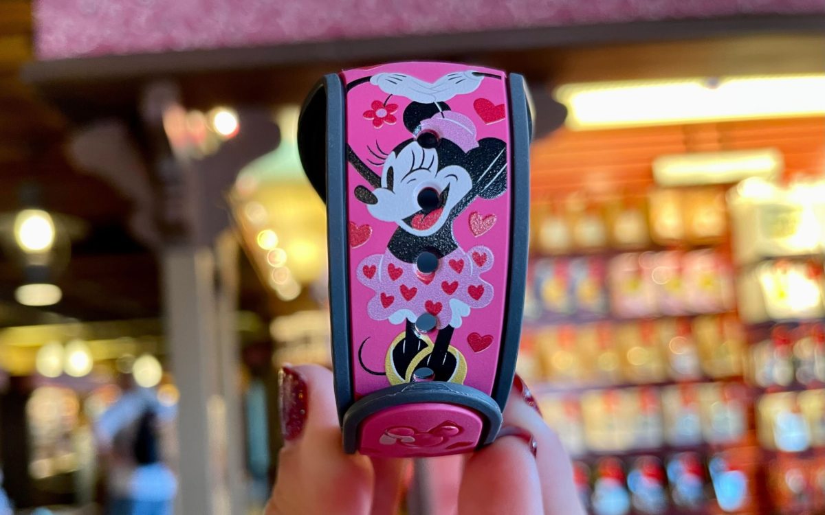 Minnie is on the other side, making a heart with her arms. Will you and your sweetheart be wearing this MagicBand this year? Let us know in the comments.