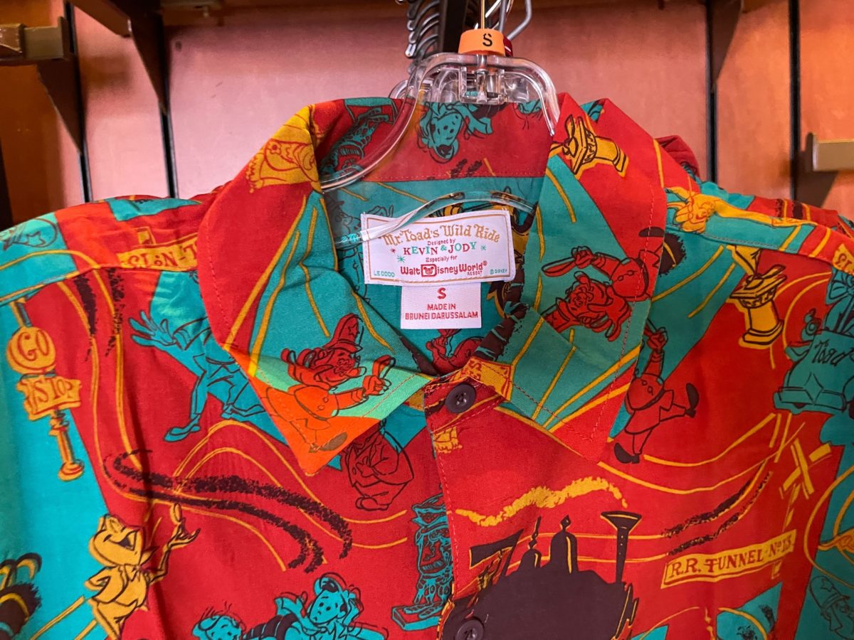A new button-up shirt inspired by Mr. Toad’s Wild Ride has arrived at Walt Disney World. We found it in Bonjour! Village Gifts at Magic Kingdom.