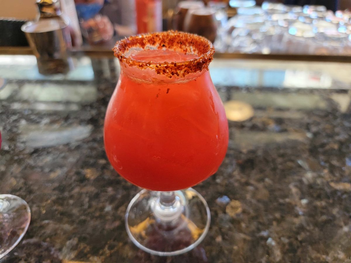 This is definitely the best of the three. With a spiced Tajin-rimmed glass, it provides a small kick of heat to underscore the sweet, almost gummy bear flavor of the red drink. Again, lots of fruit flavors melding into one but that pop of spice from the rim really sets it apart.