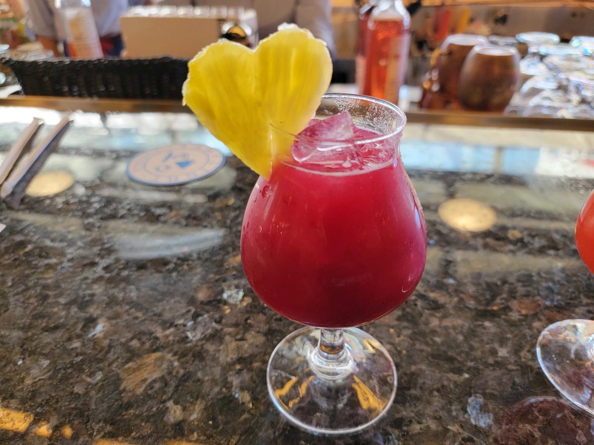 Our first option was very sweet. With so many fruit flavors, it all kind of melts together. Honestly the best way to describe this flavor is just purple. It’s very much as the cocktail appears, and no flavor really stands out. That being said, it’s light, sweet, and refreshing, so it’s not all bad all things considered. The pineapple heart garnish was a nice extra touch.