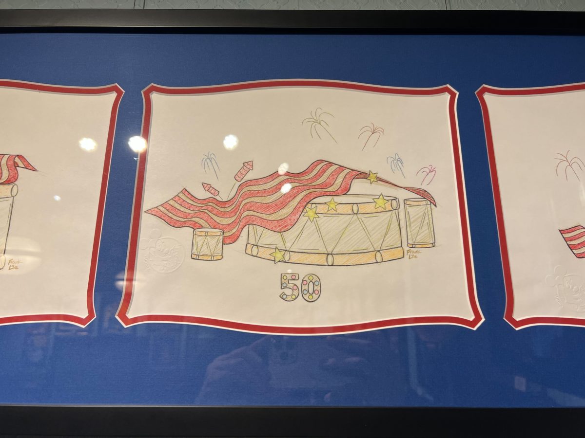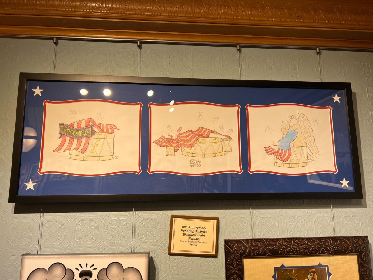 At Disneyana in Disneyland Park, we spotted this new sketch art honoring the “To Honor America” parade float, which was formerly the finale float in the Main Street Electrical Parade.
