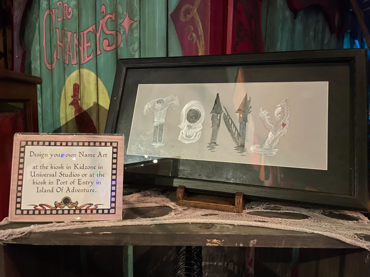 Monster-themed name art was also on display. This name art can be done at kiosks in Woody Woodpecker’s KidZone or Port of Entry.