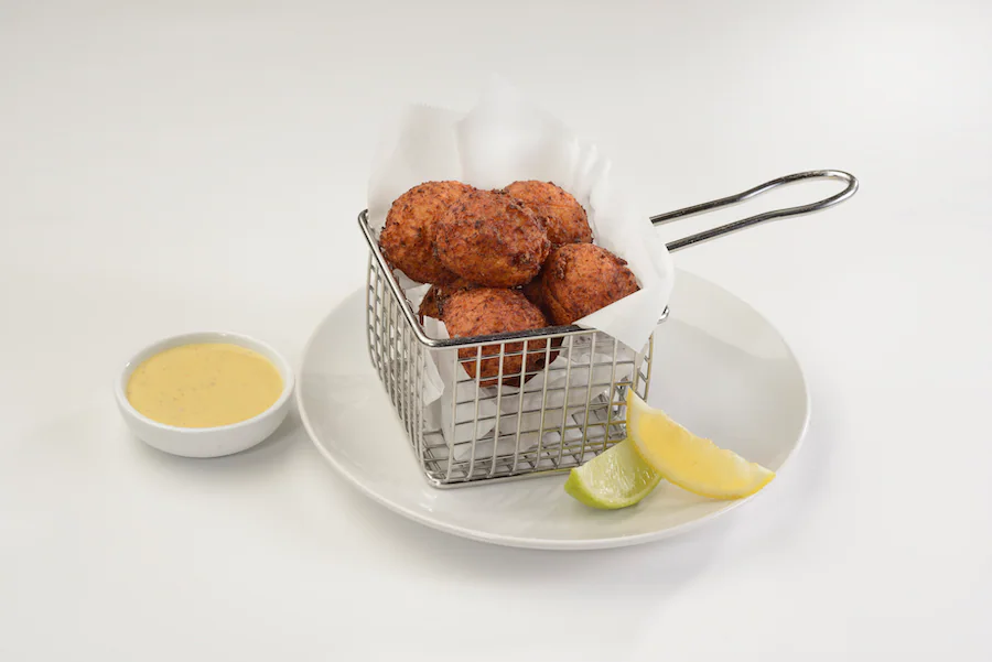 The shrimp fritters will be available at both Olivia’s Cafe and Gurgling Suitcase Libations & Spirits. The change is to help support sustainable seafood initiatives.