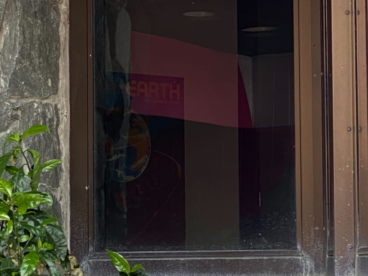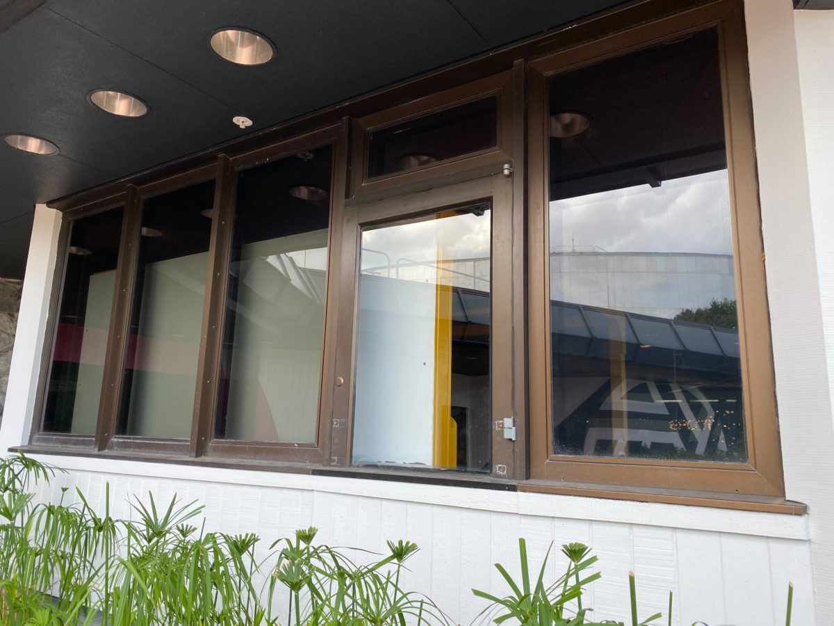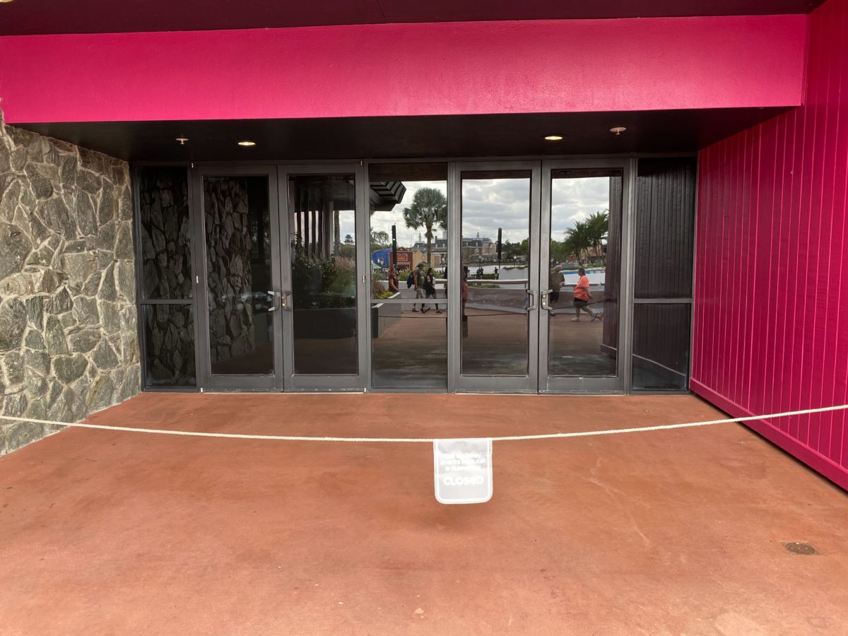 On the Test Track side of the pavilion, a rope blocks the doors.