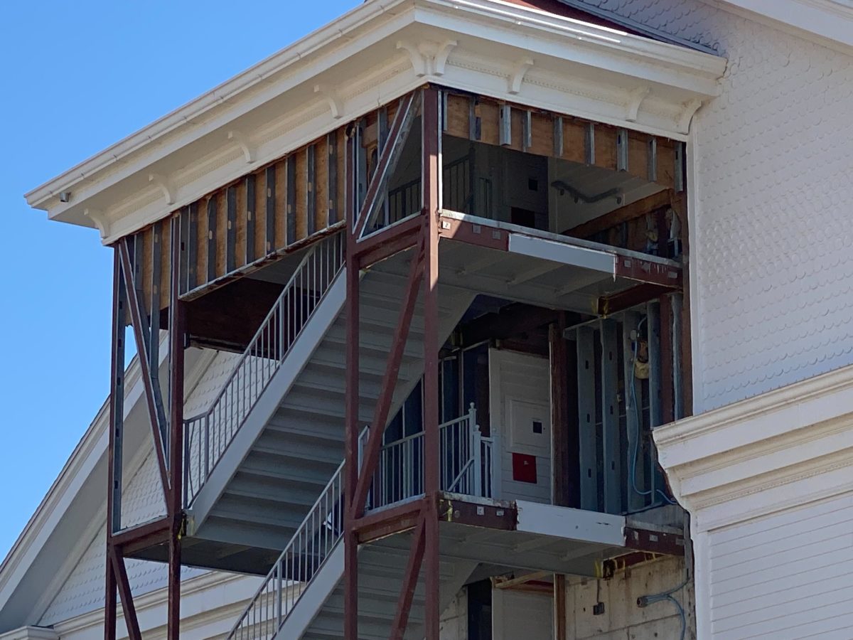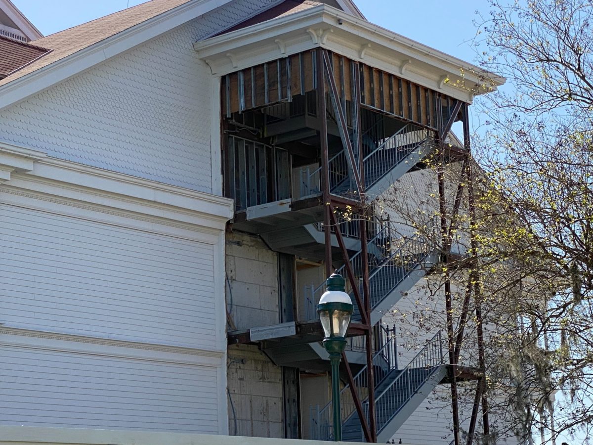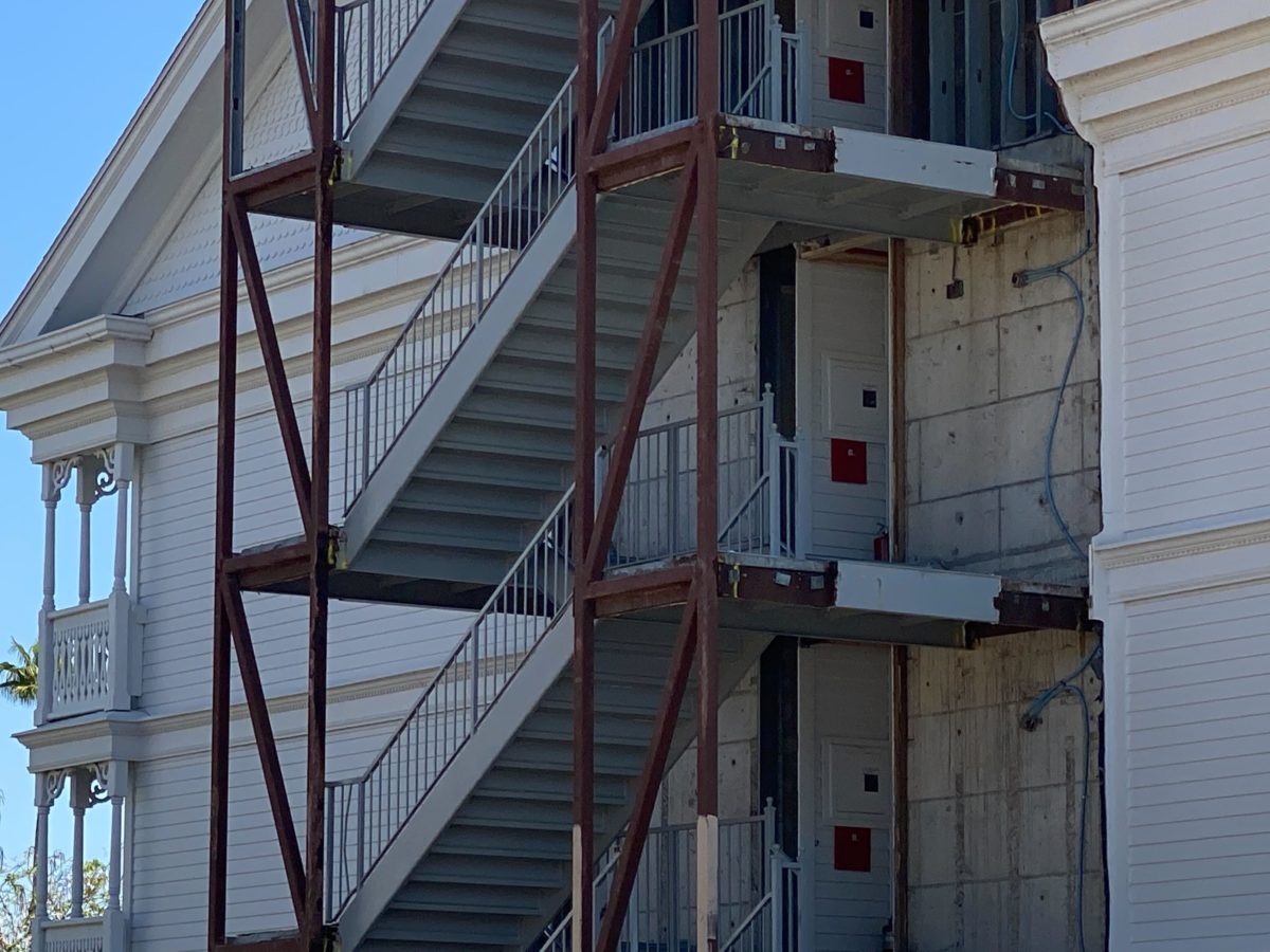 Staircases at the Grand Floridian are usually partially enclosed with white paneling that matches the building’s exterior walls.