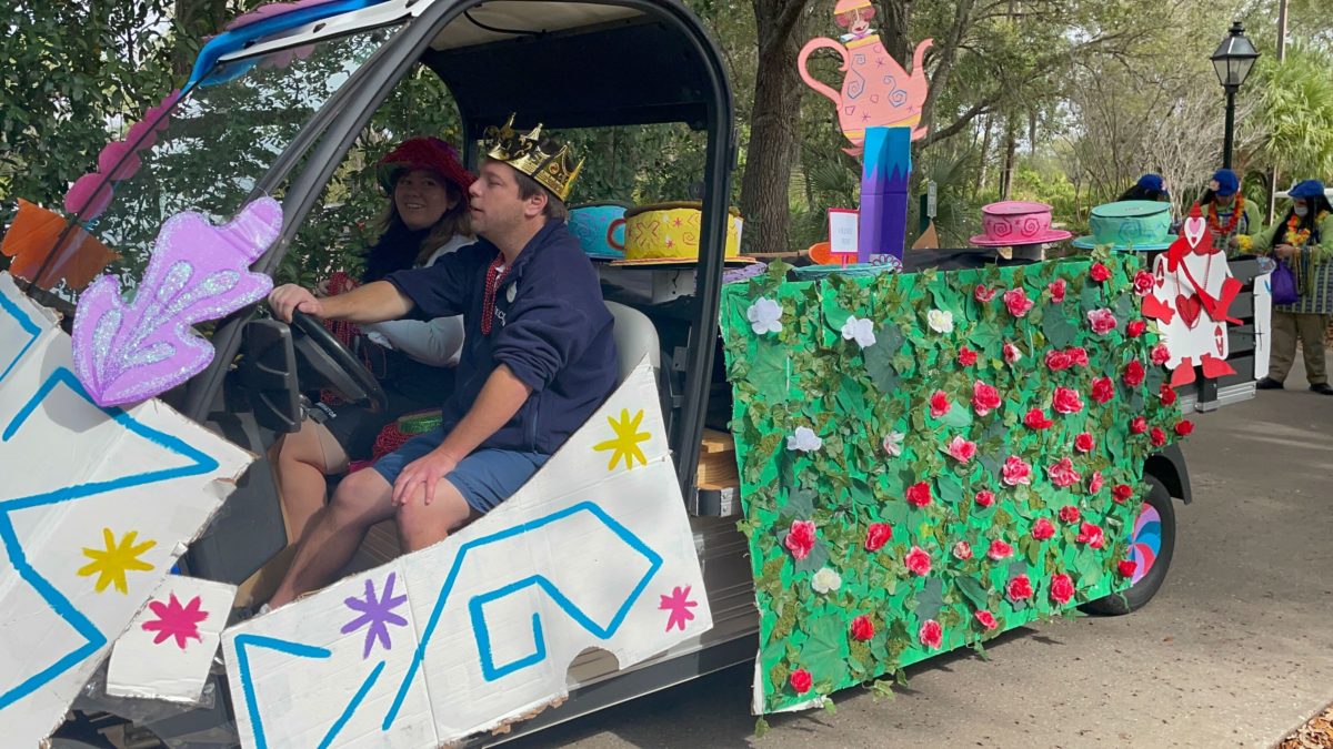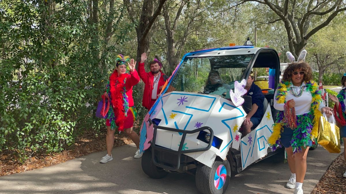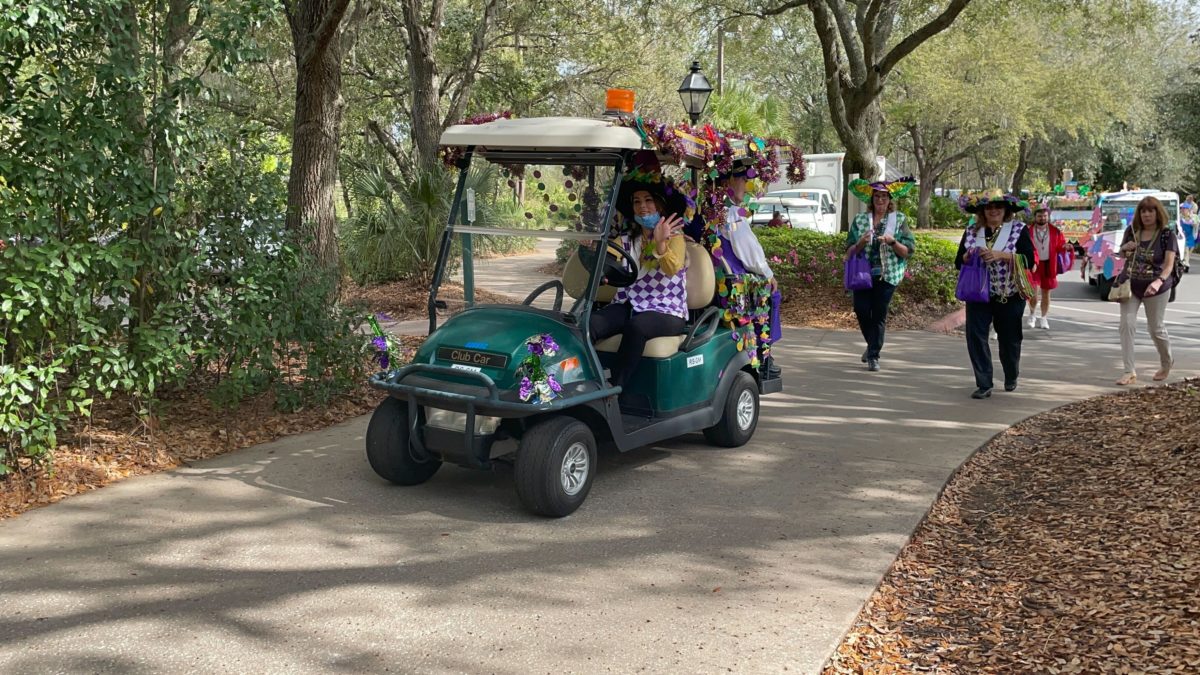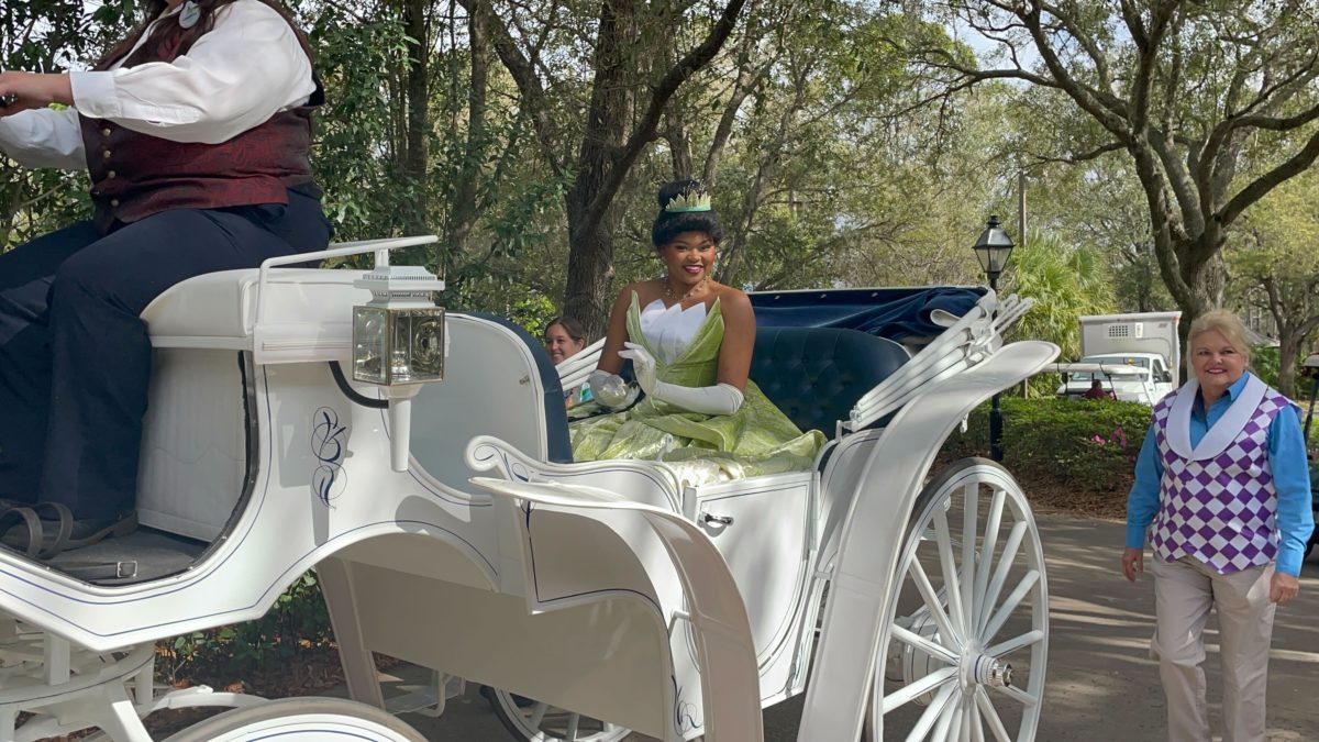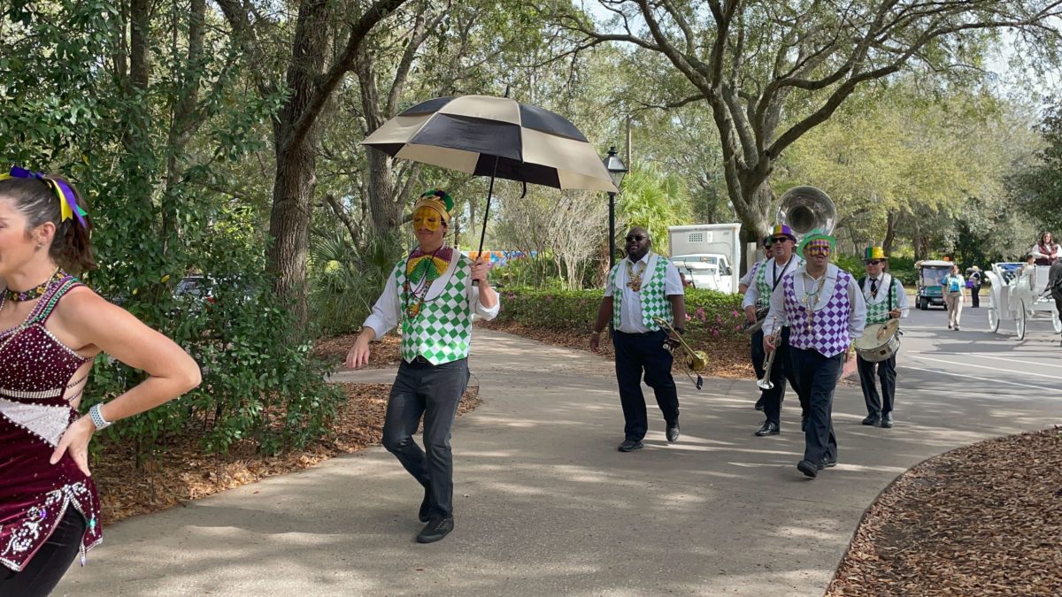 Disney’s Port Orleans Resort held their annual Mardi Gras parade today, featuring decked-out golf carts and Princess Tiana herself.