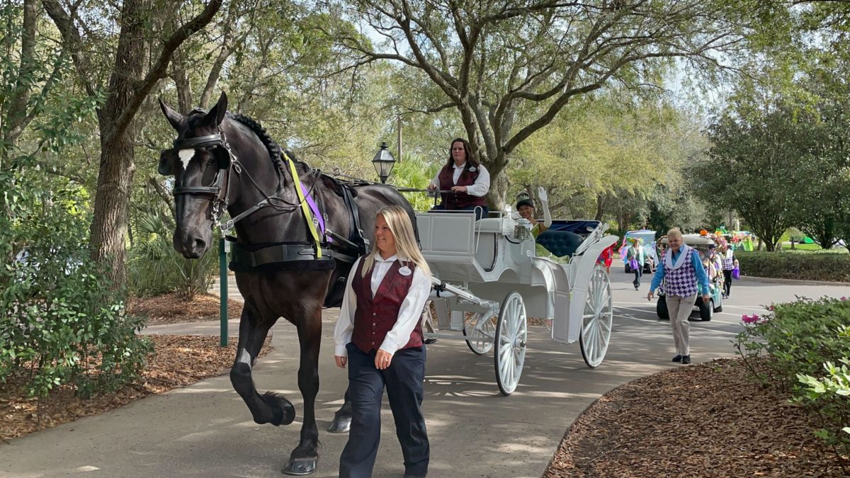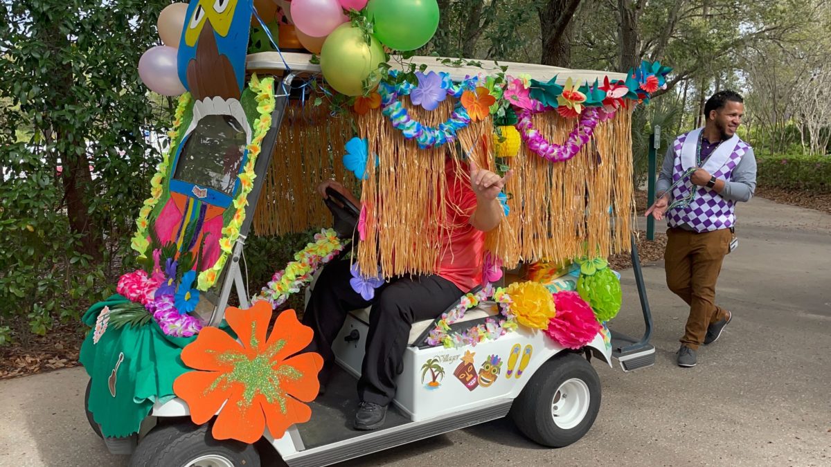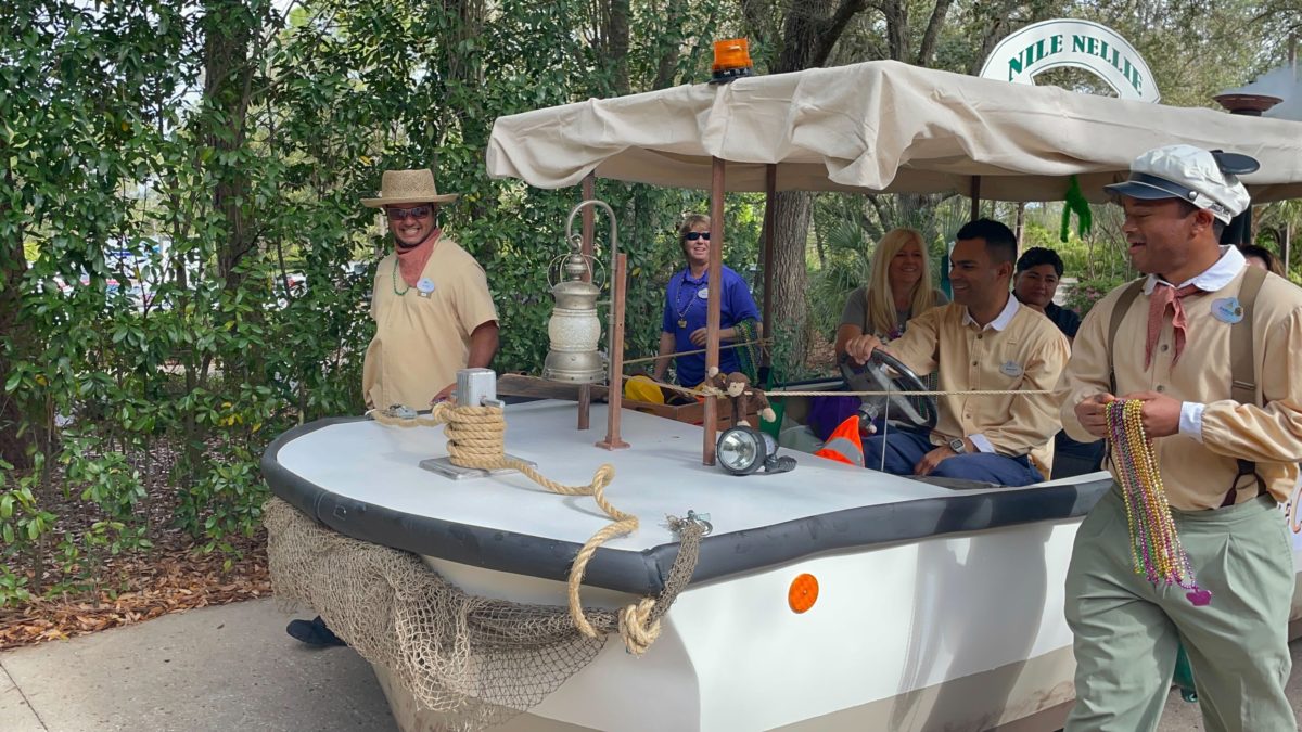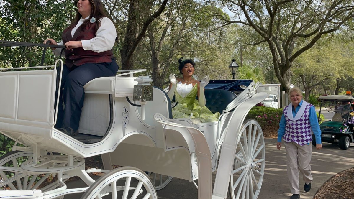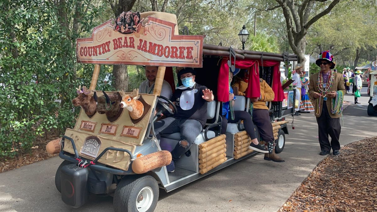 Disney’s Port Orleans Resort held their annual Mardi Gras parade today, featuring decked-out golf carts and Princess Tiana herself.