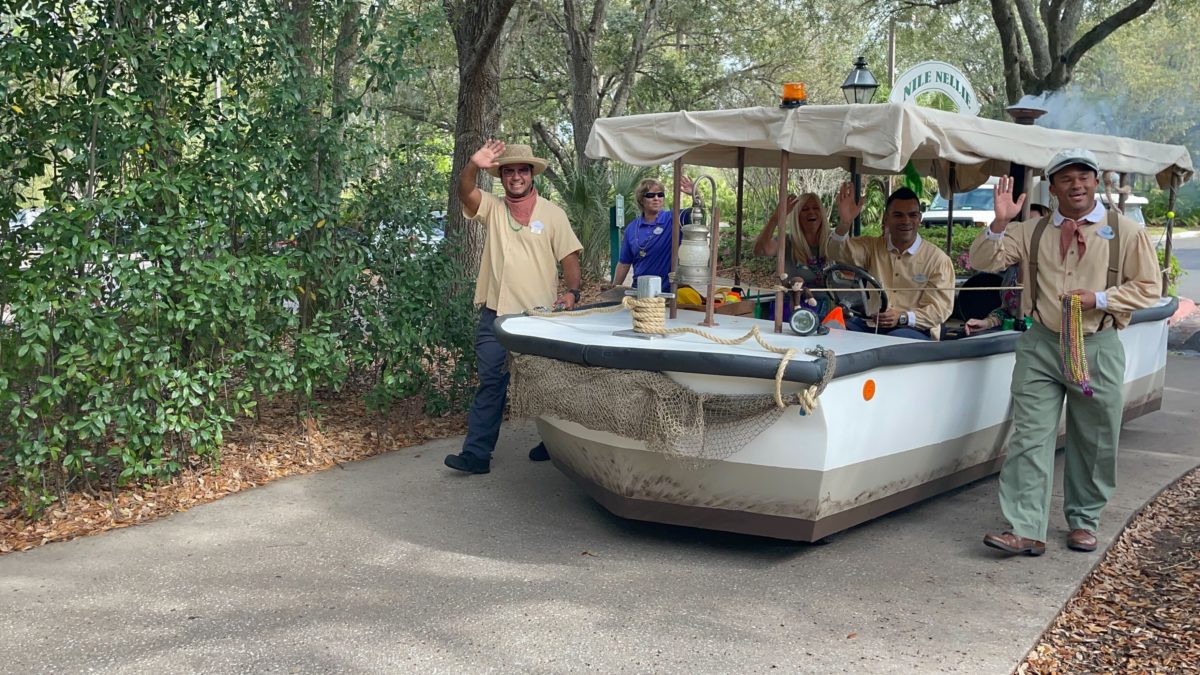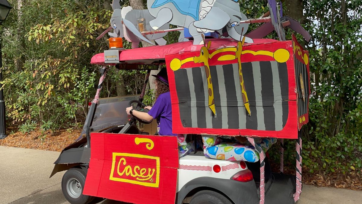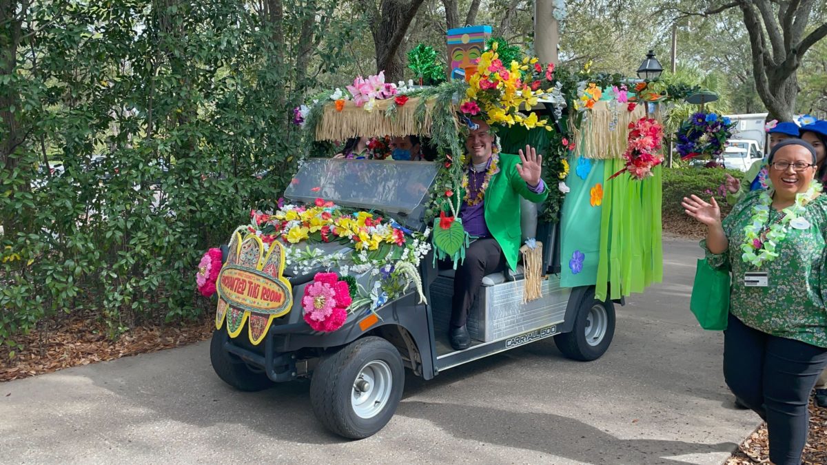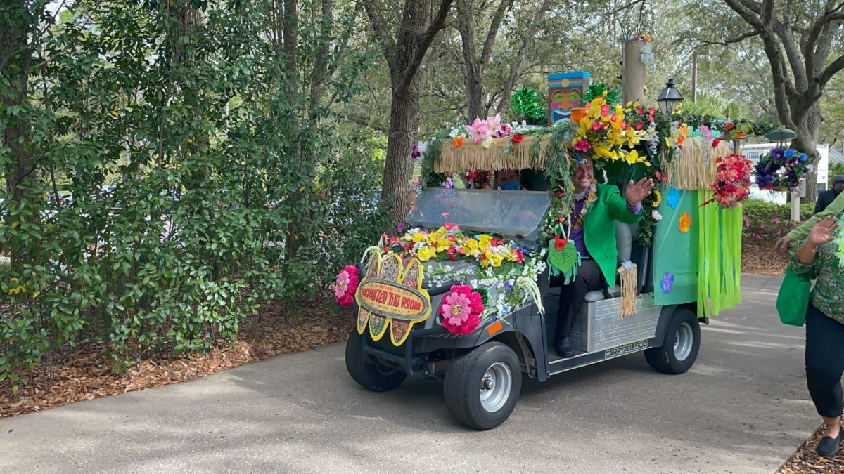 Some golf carts were inspired by different attractions, including this Enchanted Tiki Room cart.