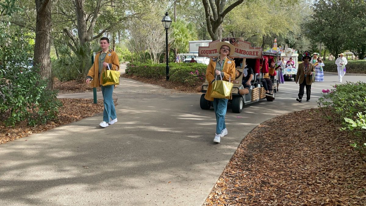 This golf cart and Cast Members were dressed up like Country Bear Jamboree.