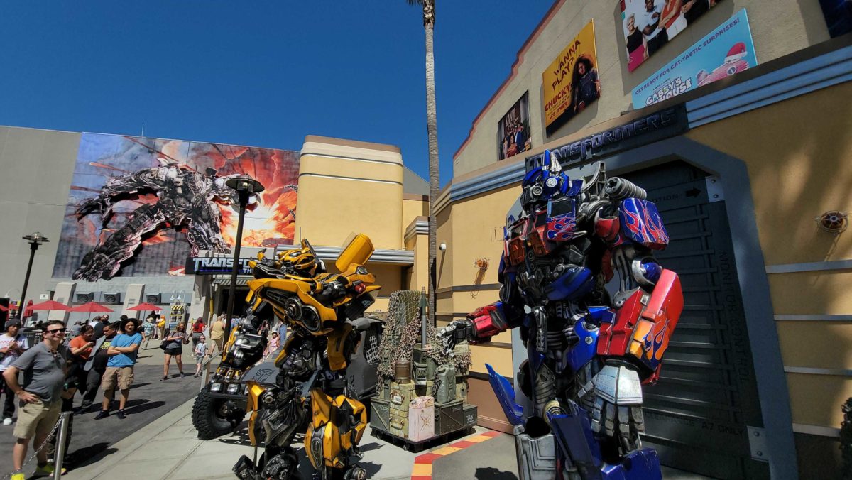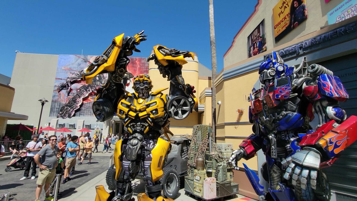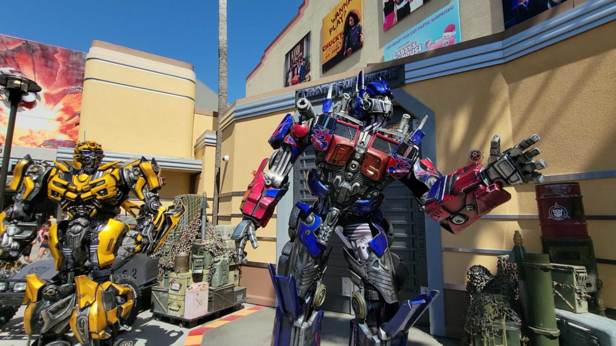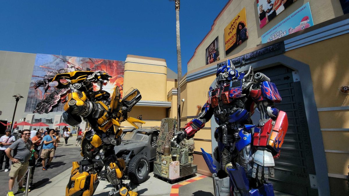 During our adventures at Universal Studios Hollywood, we noticed the Autobots, Optimus Prime and Bumblebee, were meeting together once again! You can meet them in the Lower Lot, right outside Transformers the Ride — 3D.