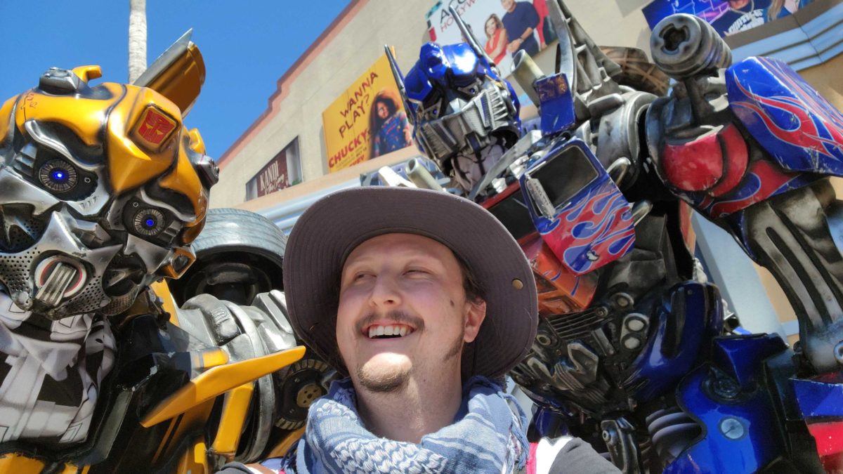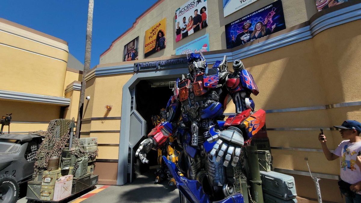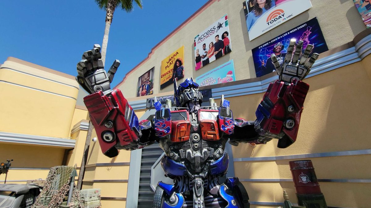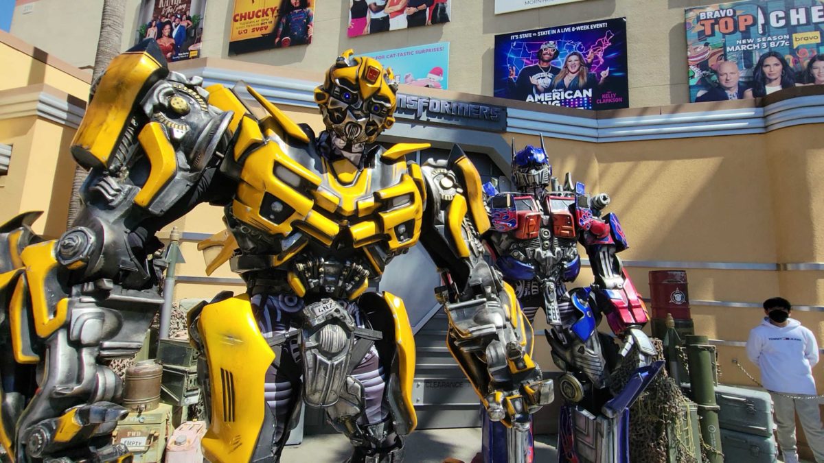 During our adventures at Universal Studios Hollywood, we noticed the Autobots, Optimus Prime and Bumblebee, were meeting together once again! You can meet them in the Lower Lot, right outside Transformers the Ride — 3D.