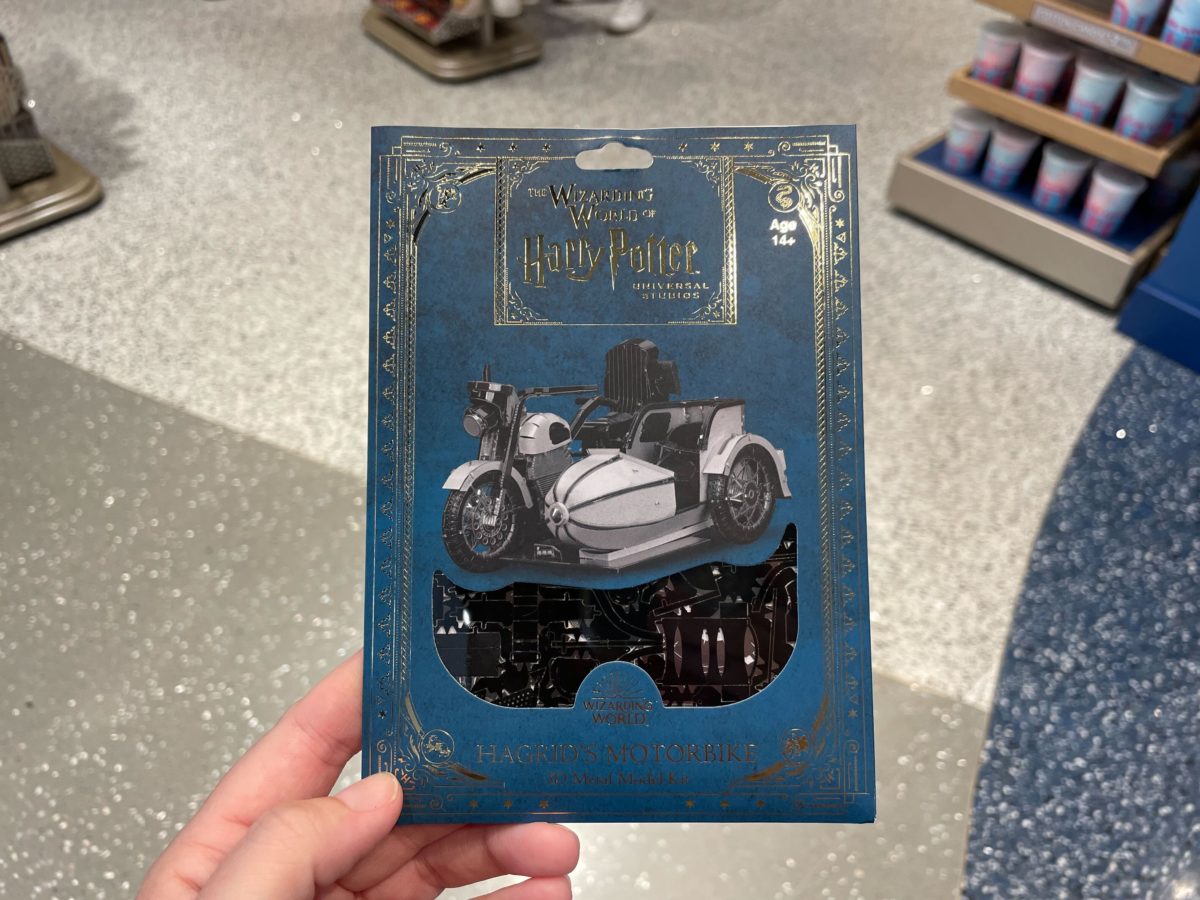 A new metal model kit, where you can build Hagrid’s motorbike as seen in Hagrid’s Magical Creatures Motorbike Adventure, has just landed at the Universal Studios Store in CityWalk.