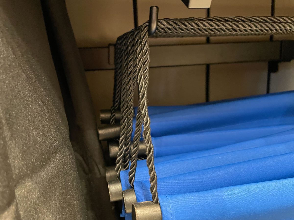Each banner is the corresponding house’s main color and features a crest of symbols in the center. The Gryffindor banner is red with a black and gold crest featuring a flaming heart, Phoenix, and the sword of Godric Gryffindor. It lists determination, courage, and bravery around the edge of the crest.