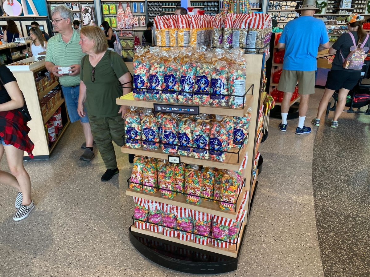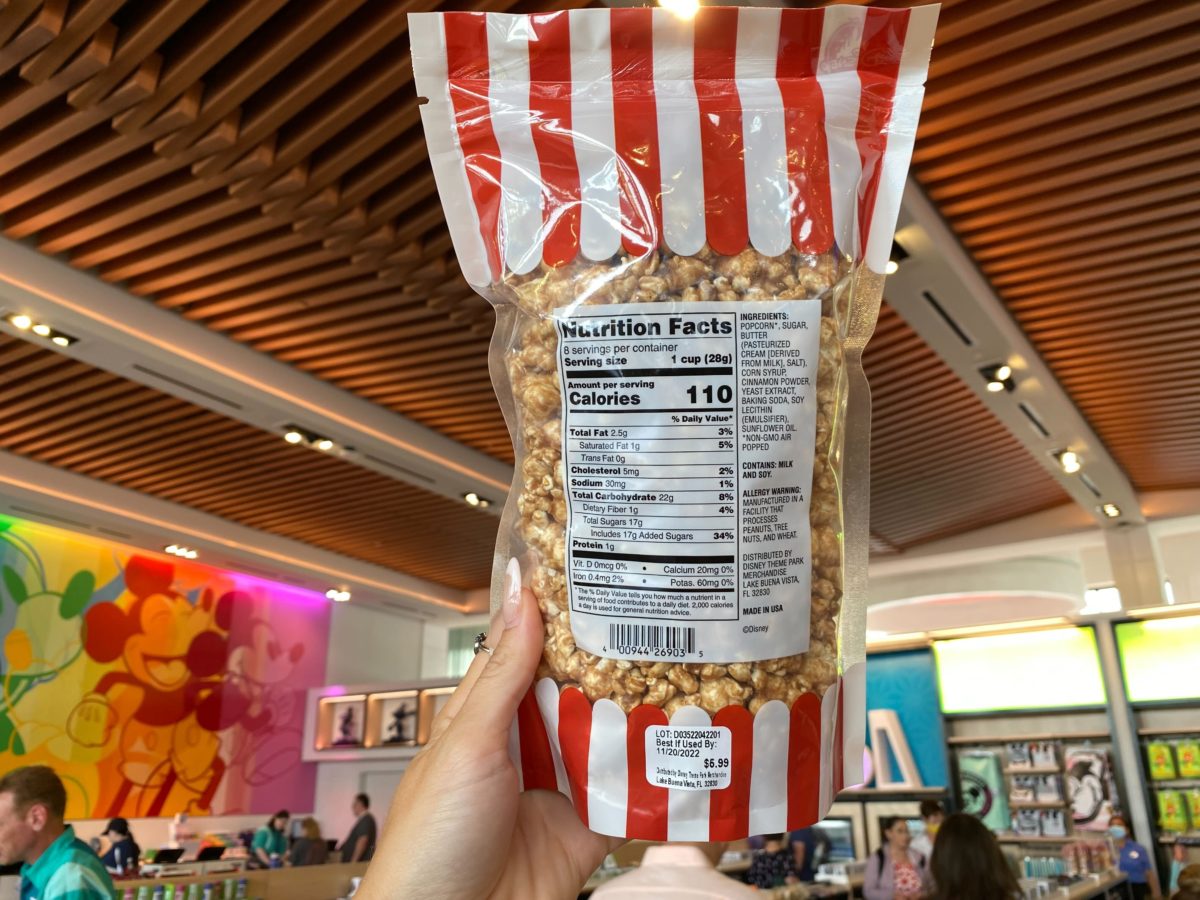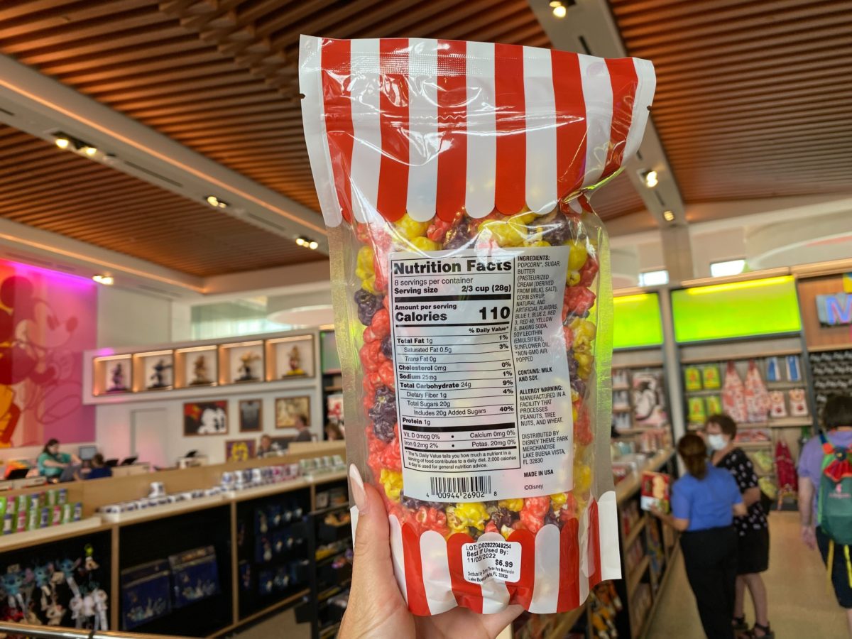 We recently reported that guests could find pre-packaged flavored popcorn in resealable bags at Disneyland Resort. We have since found lots of flavored popcorn in the same new bags at EPCOT. We review three flavors here.