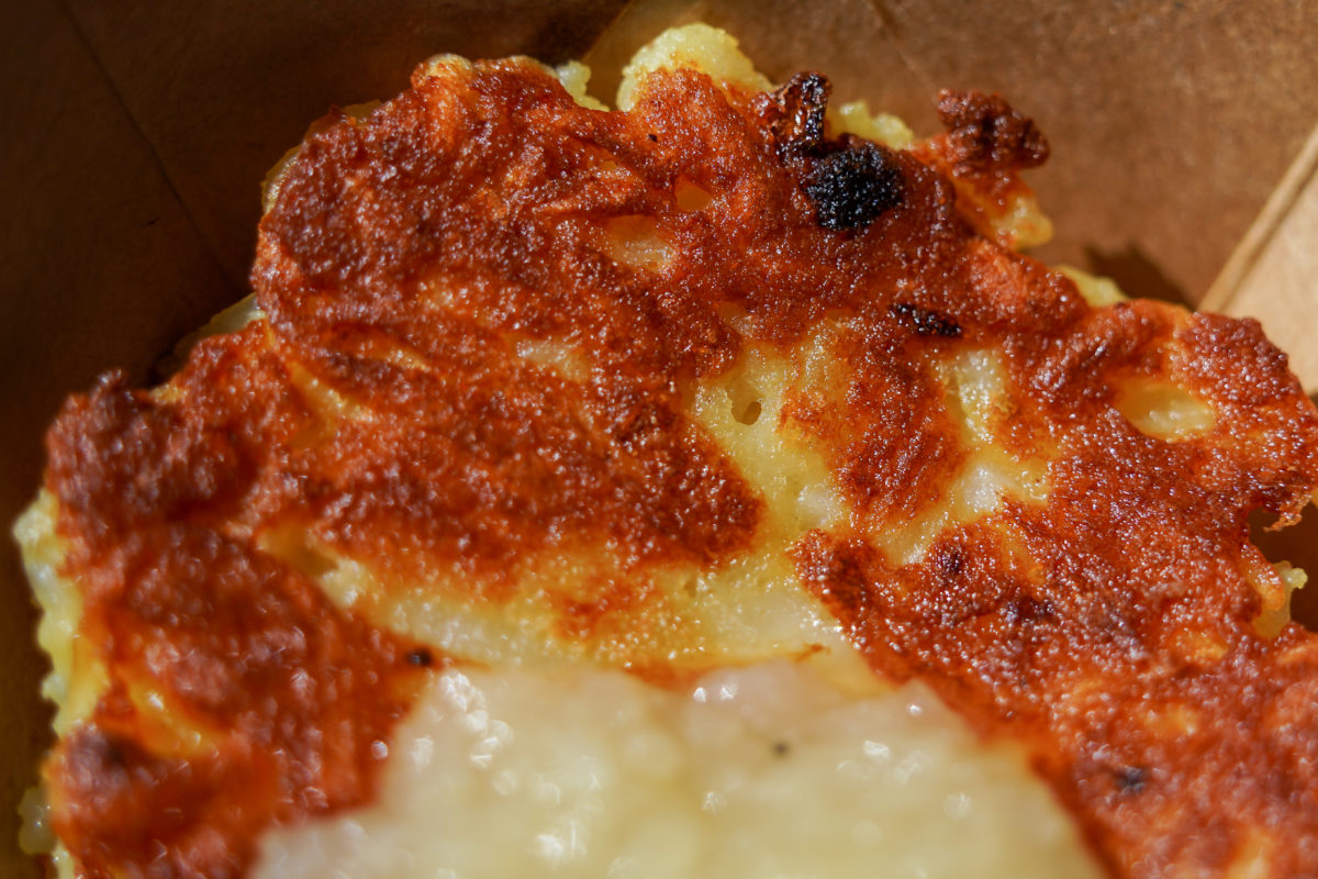 The toppings here don’t do much to elevate the potato pancake dish. Another pass.
