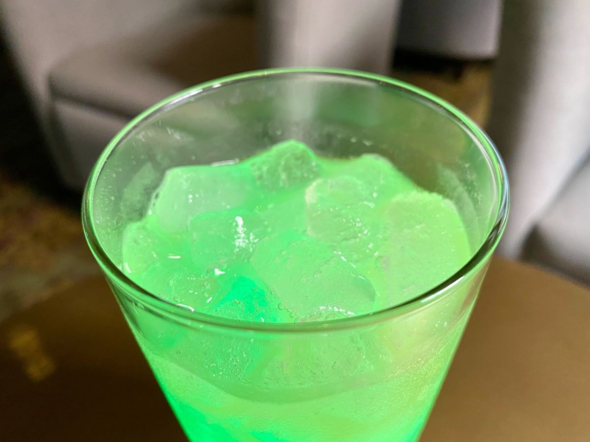 Tito’s Handmade Vodka, Bayou Silver Rum, Cruzan Mango Rum, and Midori Melon Liqueur with Pineapple Juice and a souvenir Glow Cube. Served in a Souvenir Cup