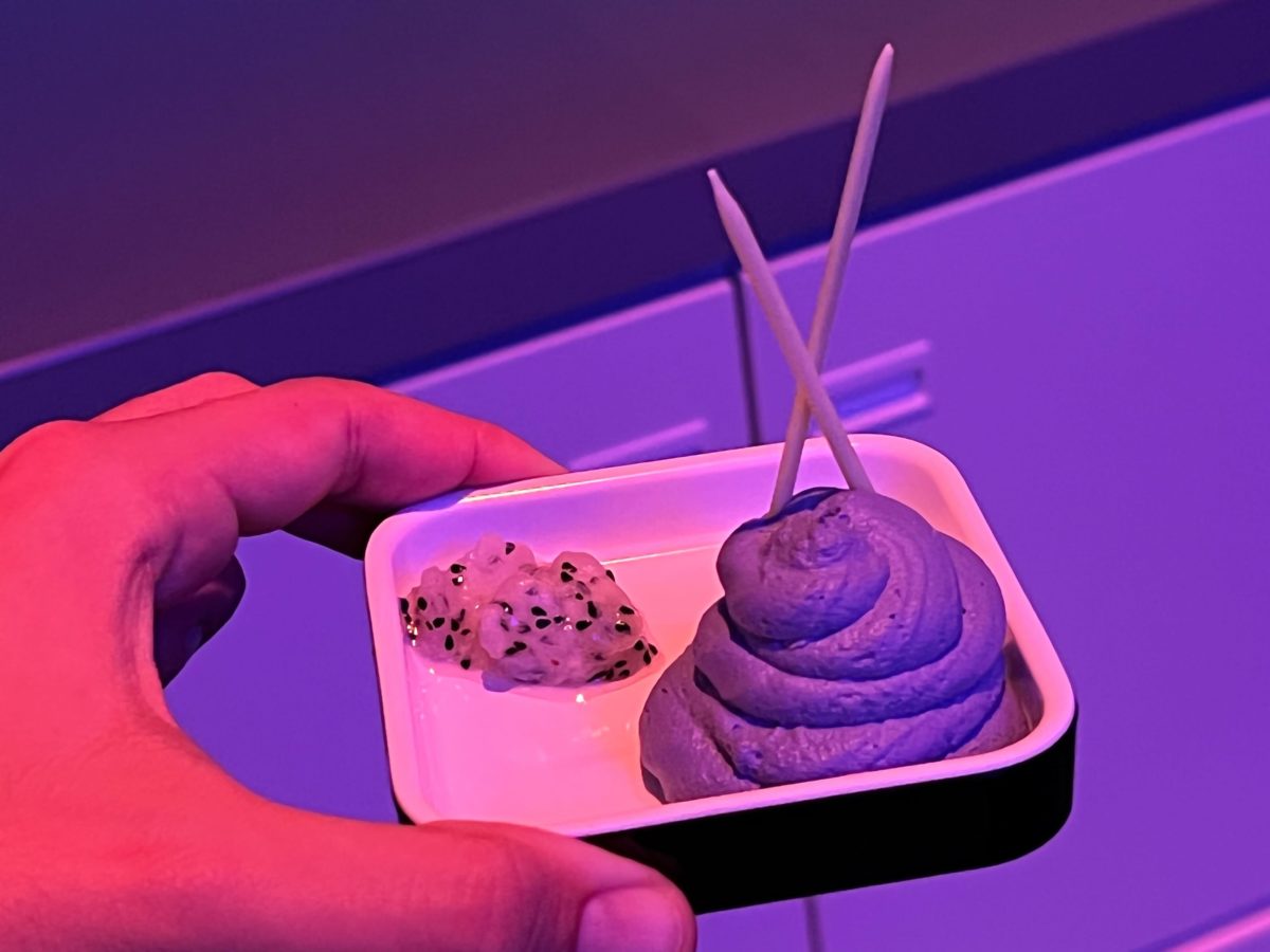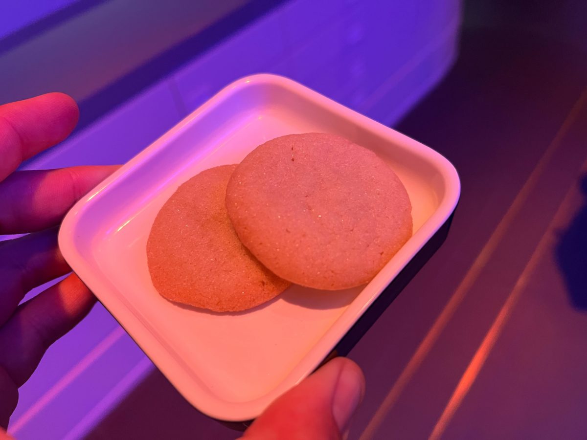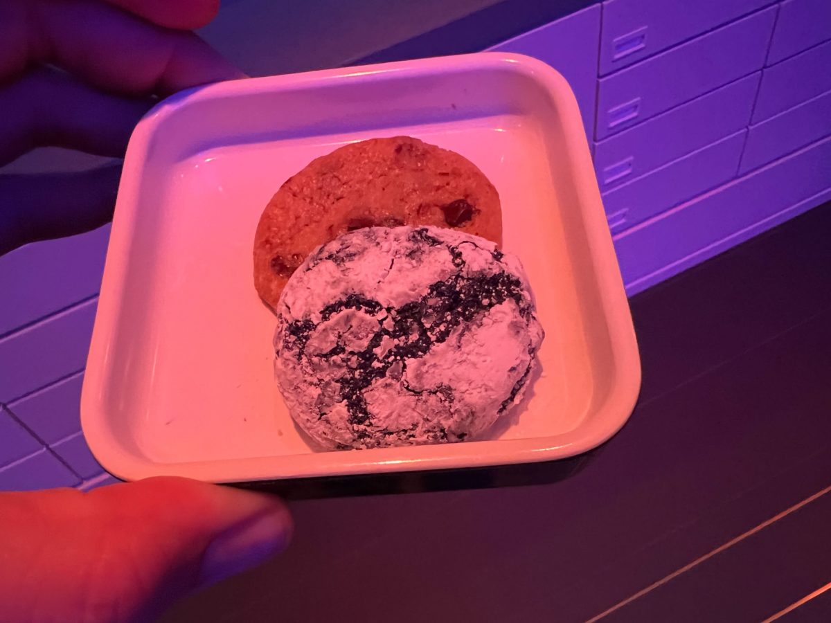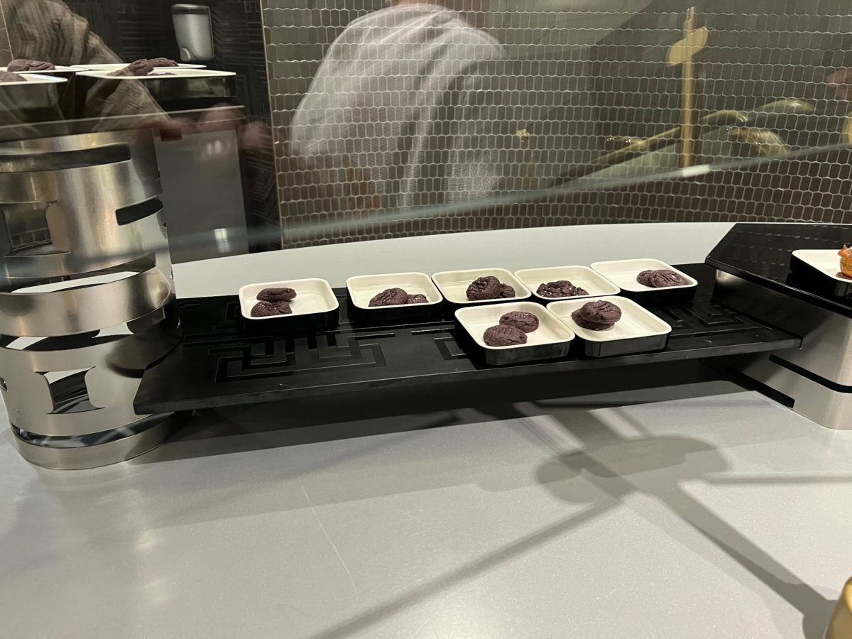 The dark cookie is actually a sunbutter cookie that is gluten, dairy and soy free. Those and the chocolate raspberry (maybe passion fruit) mousse were fabulous. Our compressed fruit was sweet and fresh. I have multiple food allergies and was fed like a queen the entire journey. The chef was very creative with his seasonings and flavors. Definitely not cheap crap. My family also enjoyed the way they decorated the food to make it look out-of-this-world fun.