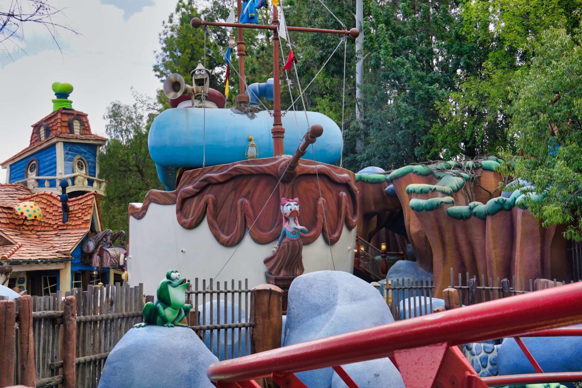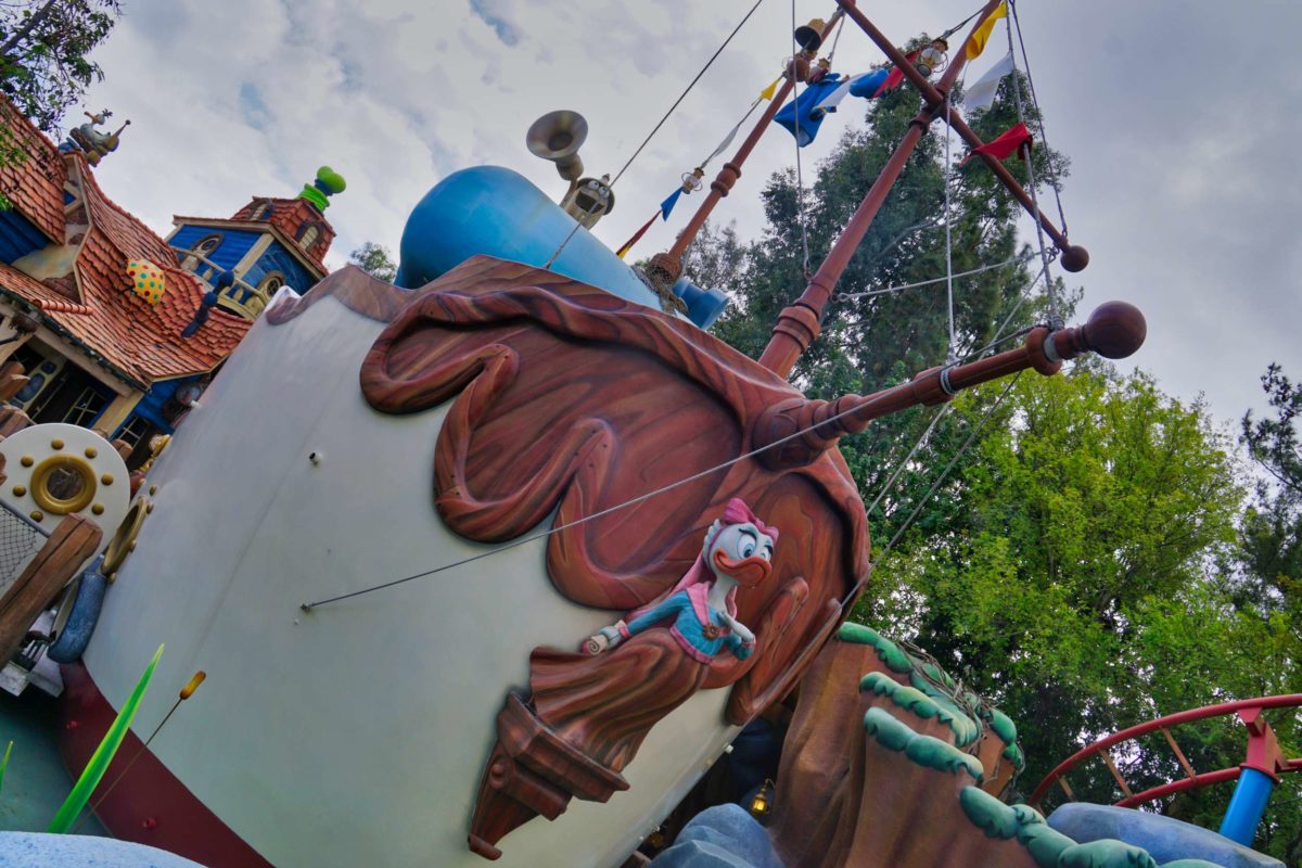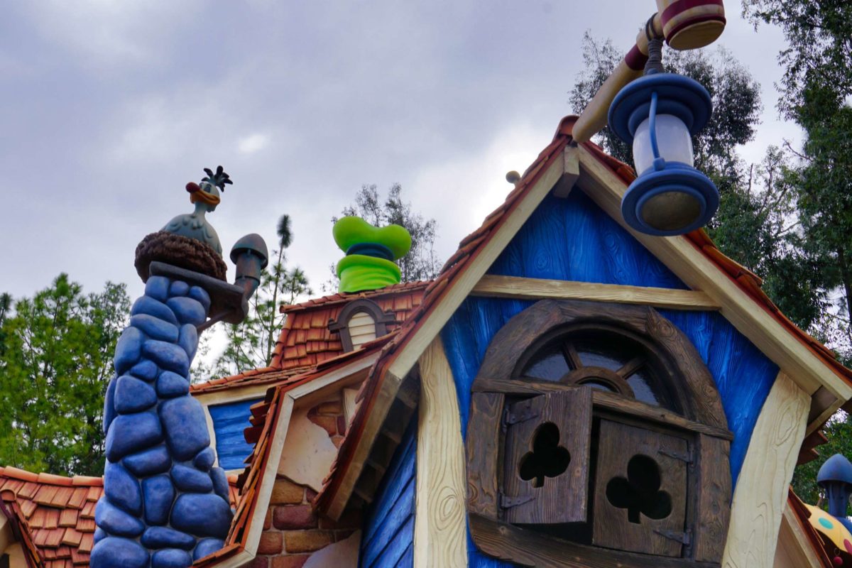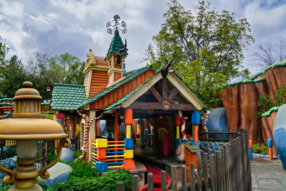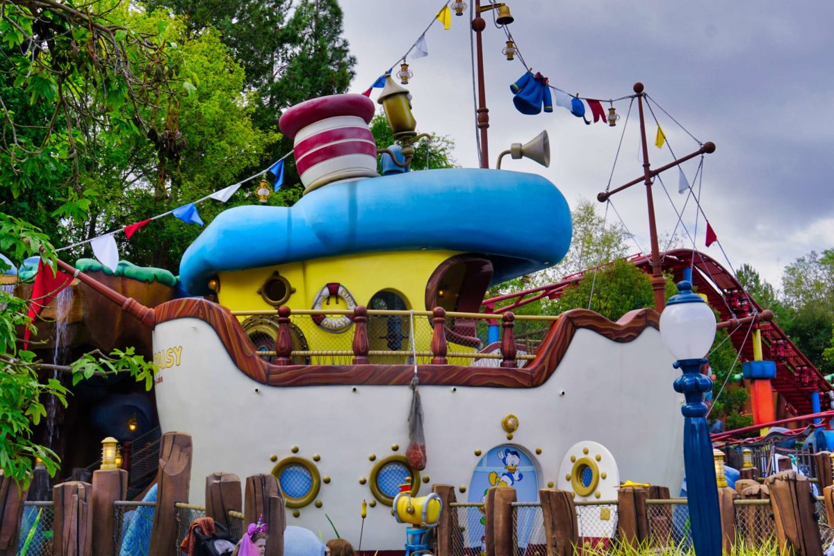 Goofy’s Playhouse, Donald’s Boat, Gadget’s Go Coaster, and Chip ‘n Dale’s Treehouse all circle the courtyard of Mickey’s Neighborhood.