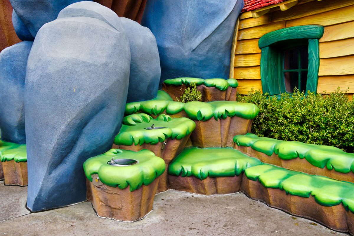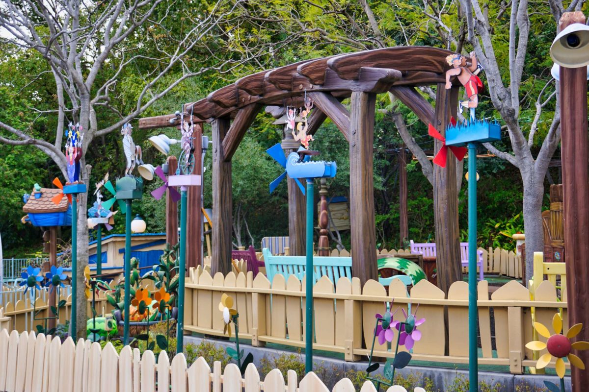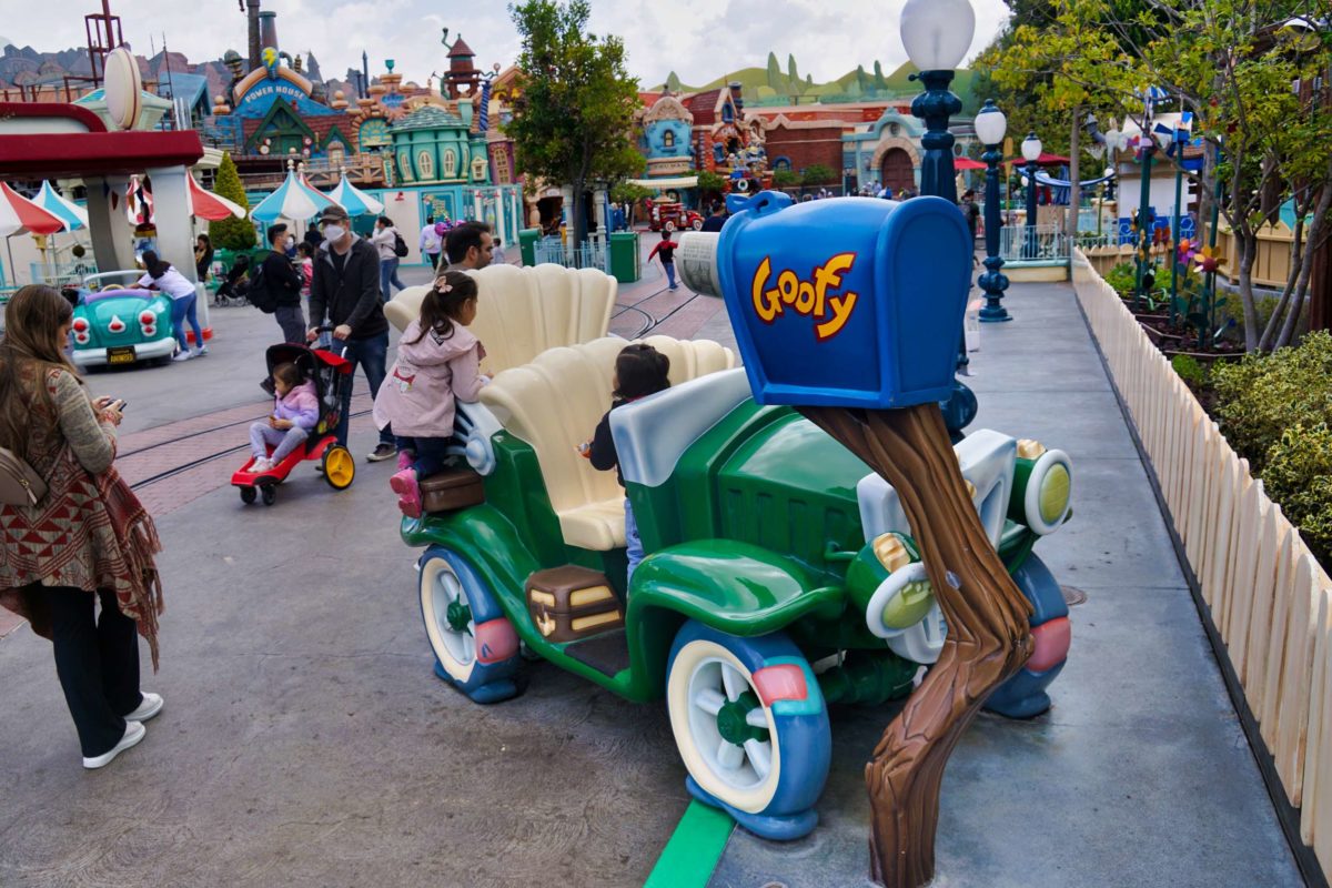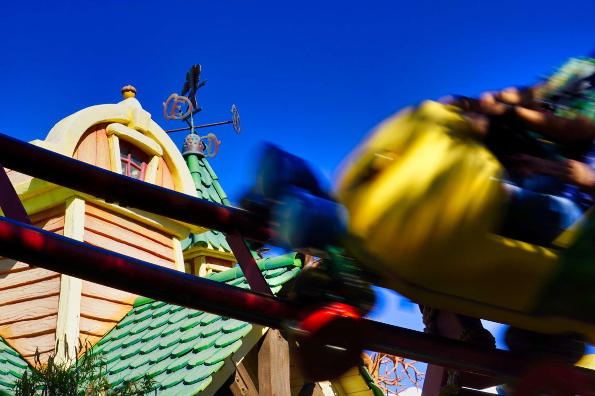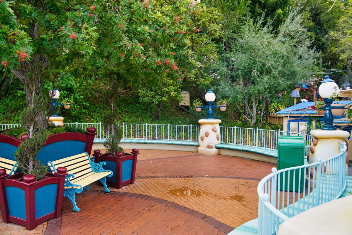 Goofy’s Playhouse, Donald’s Boat, Gadget’s Go Coaster, and Chip ‘n Dale’s Treehouse all circle the courtyard of Mickey’s Neighborhood.