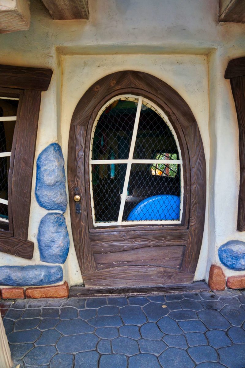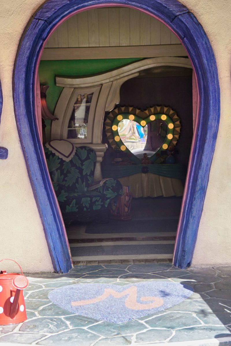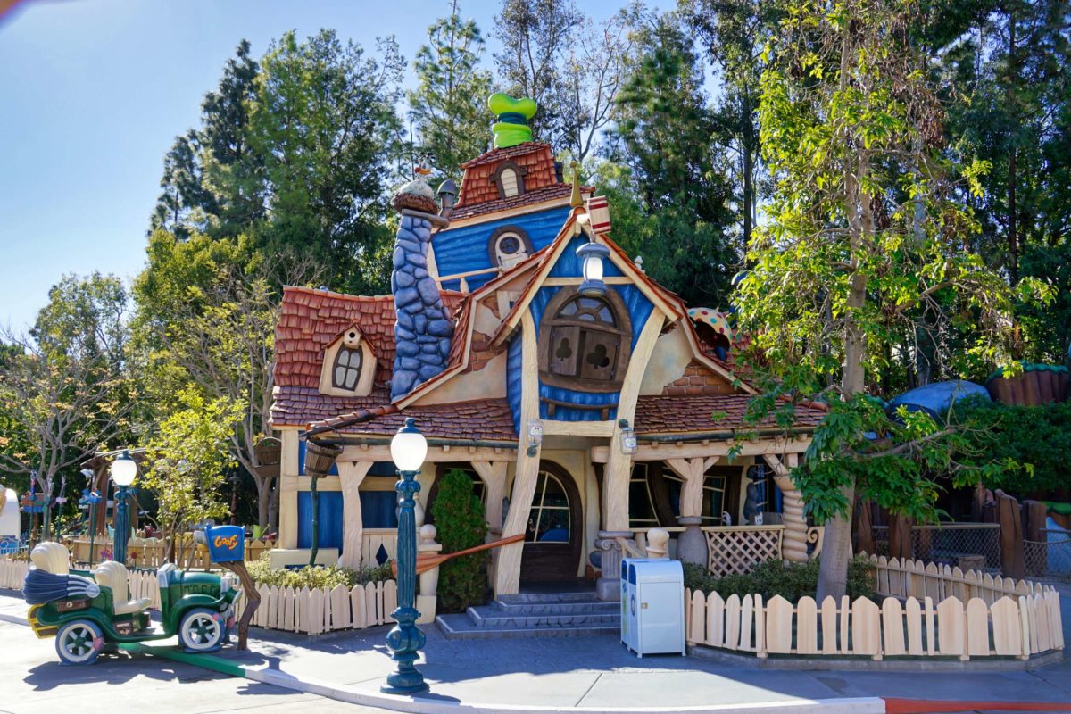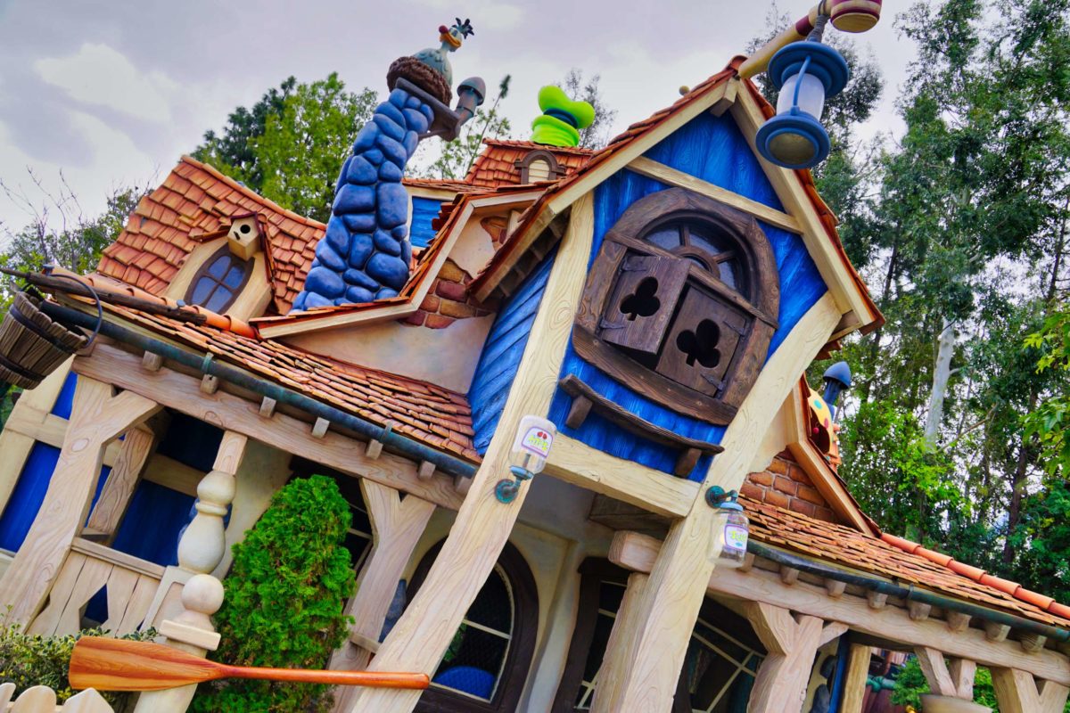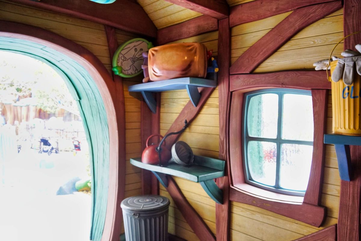 Let’s take a peek inside. Guests can’t currently enter Goofy’s Playhouse or the playground garden, but we can see through the windows and over the fence.