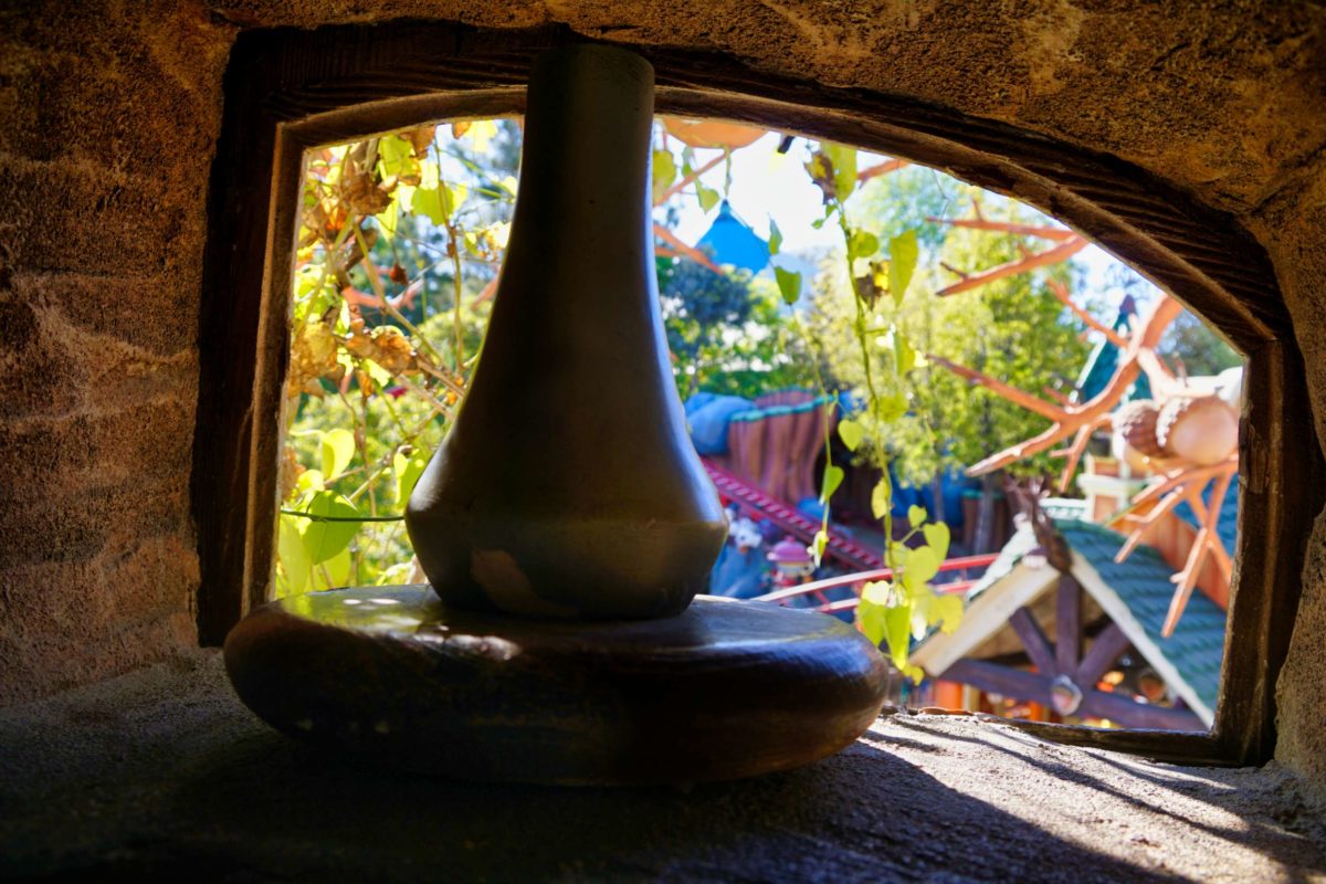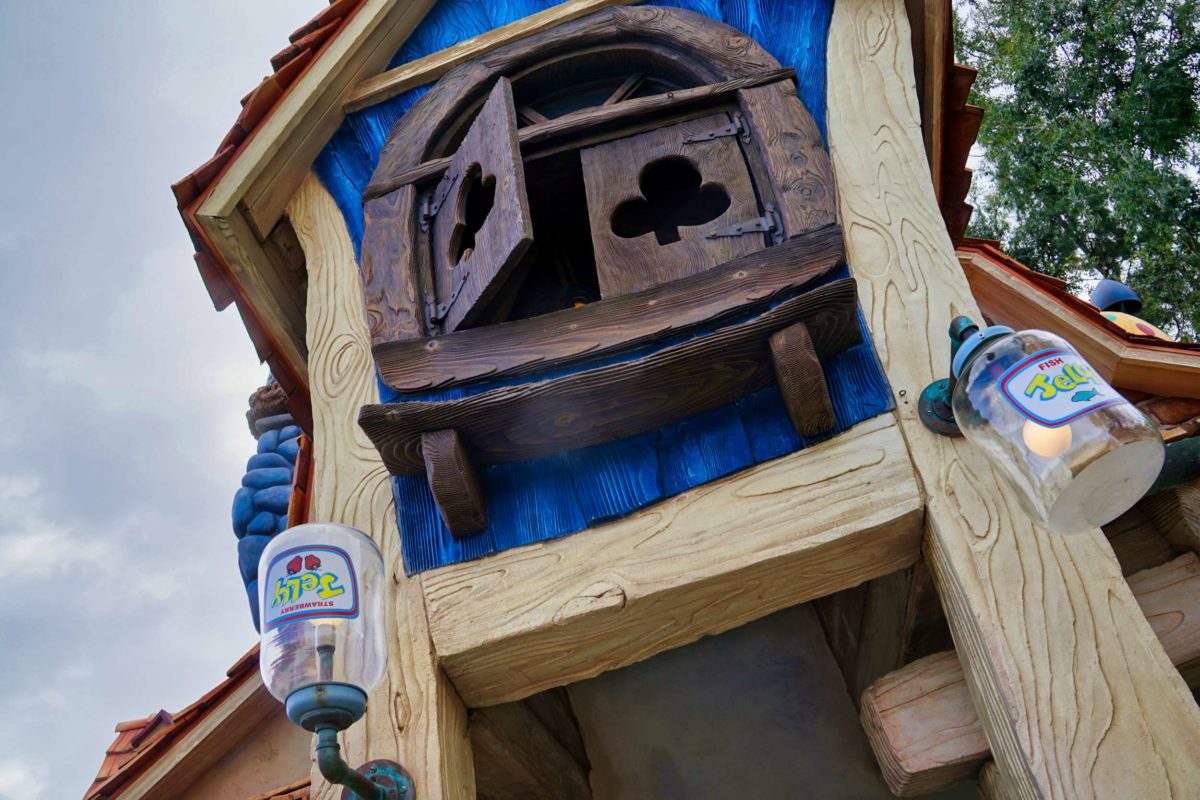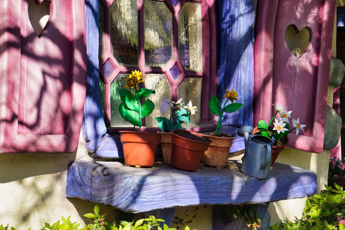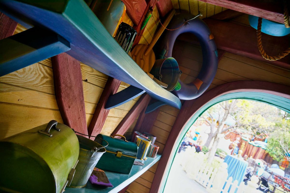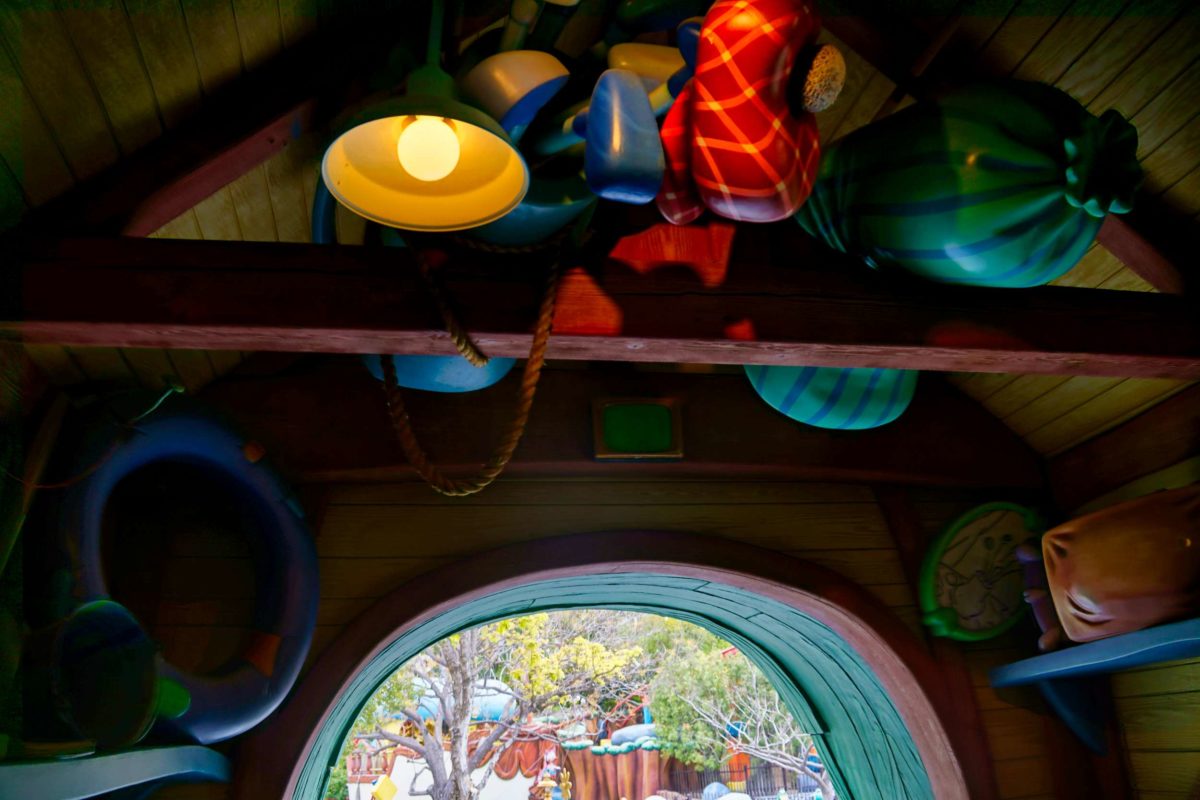 Let’s take a peek inside. Guests can’t currently enter Goofy’s Playhouse or the playground garden, but we can see through the windows and over the fence.