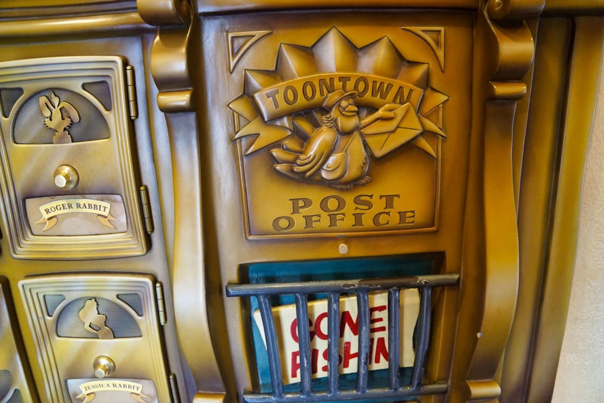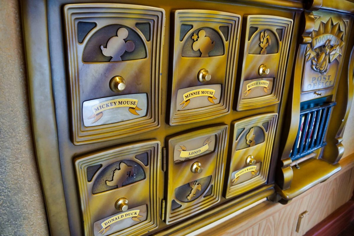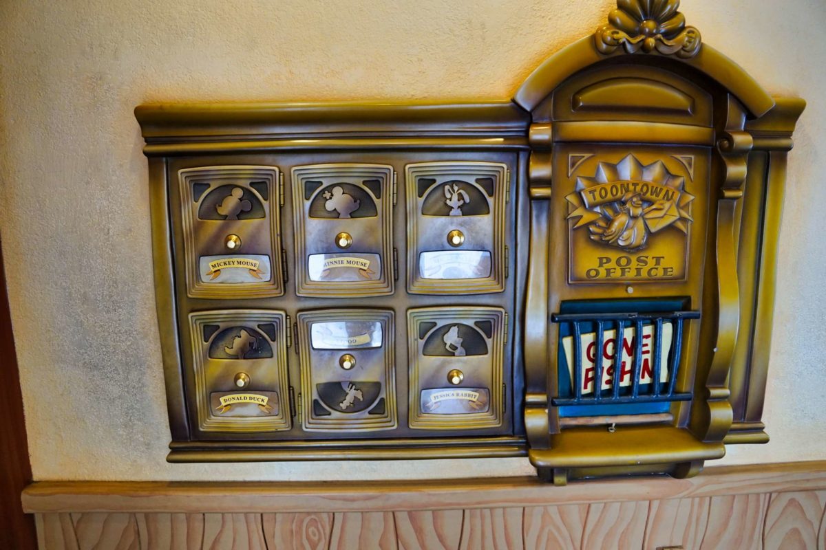 Immediately upon entering the Toontown Post Office are six mailboxes for Mickey, Minnie, Roger, Donald, Goofy, and Jessica.