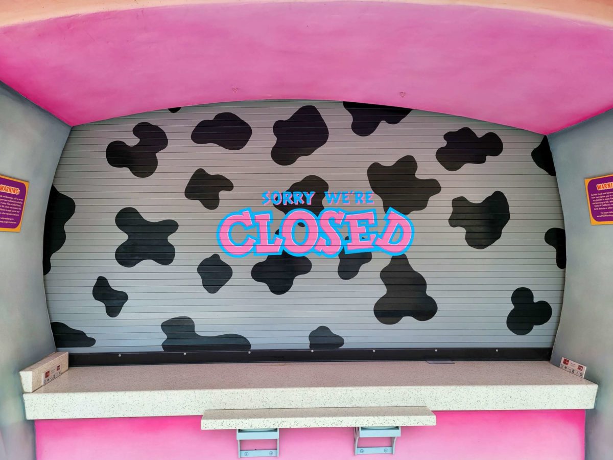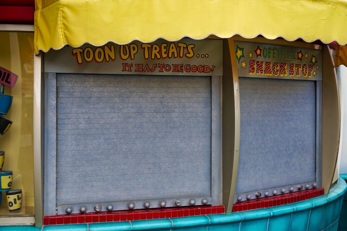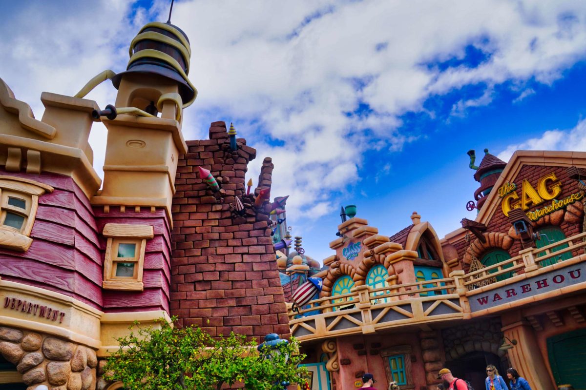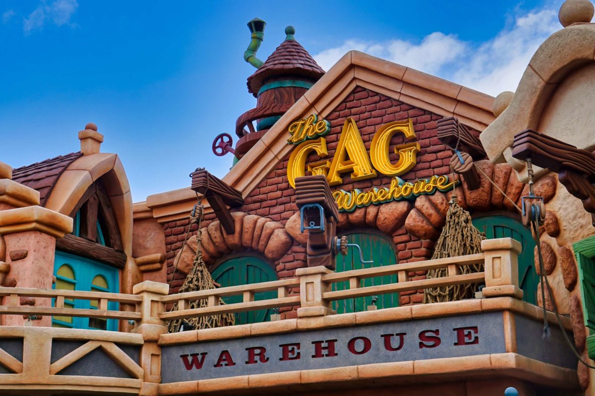 The Gag Factory and Toontown Five & Dime stores closed in 2020. The Gag Warehouse façade remains.